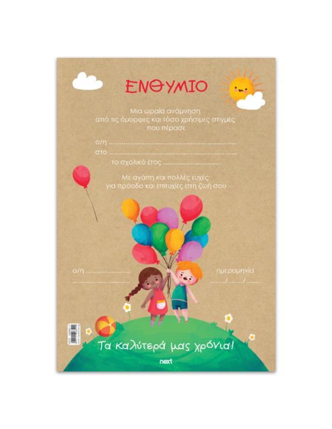 Next σχολικό ενθύμιο μονόφυλλο "Παιδιά με μπαλόνια" 23x33εκ.