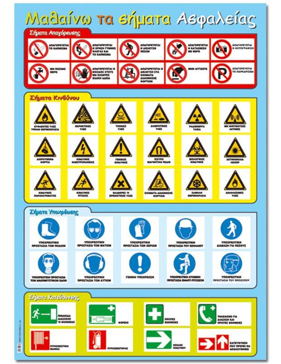 Εκπαιδευτική αφίσα "Σήματα ασφαλείας". Πλαστικοποιημένη, Ιδανική για σχολεία. Διαστάσεις: 50x70εκ.