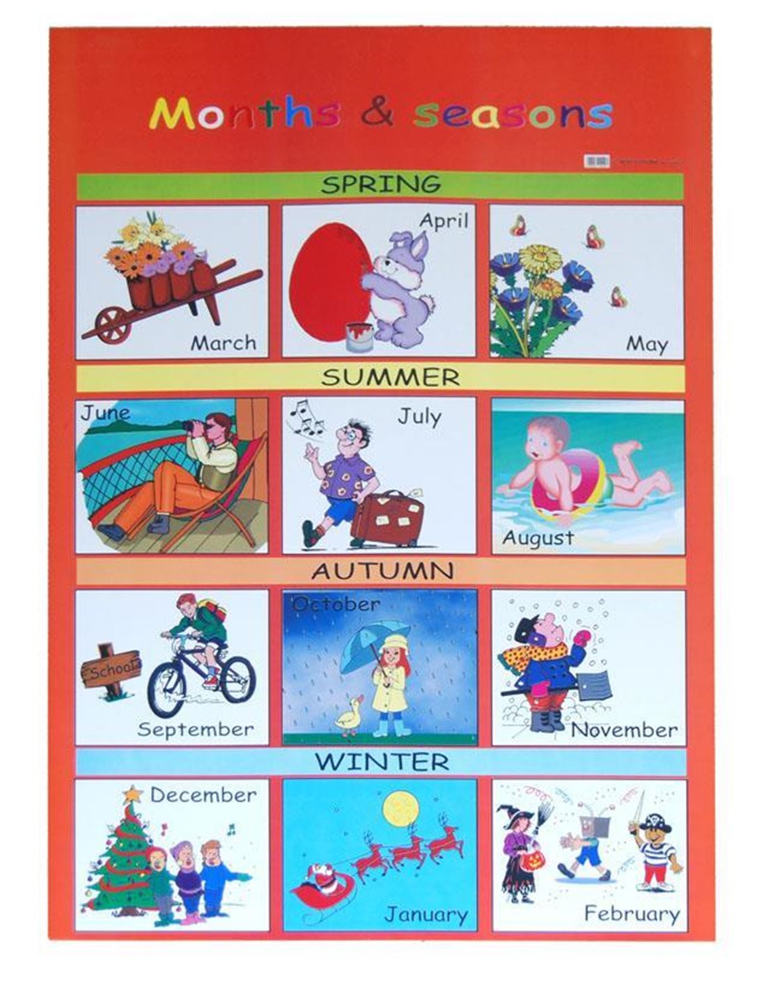 Εκπαιδευτική αφίσα "Οι εποχές του χρόνου" στα Αγγλικά. Πλαστικοποιημένη. Ιδανική για σχολεία, νηπιαγωγεία, φροντιστήρια ξένων γλωσσών, αλλά και παιδικά δωμάτια. Διαστάσεις: 50x70εκ.