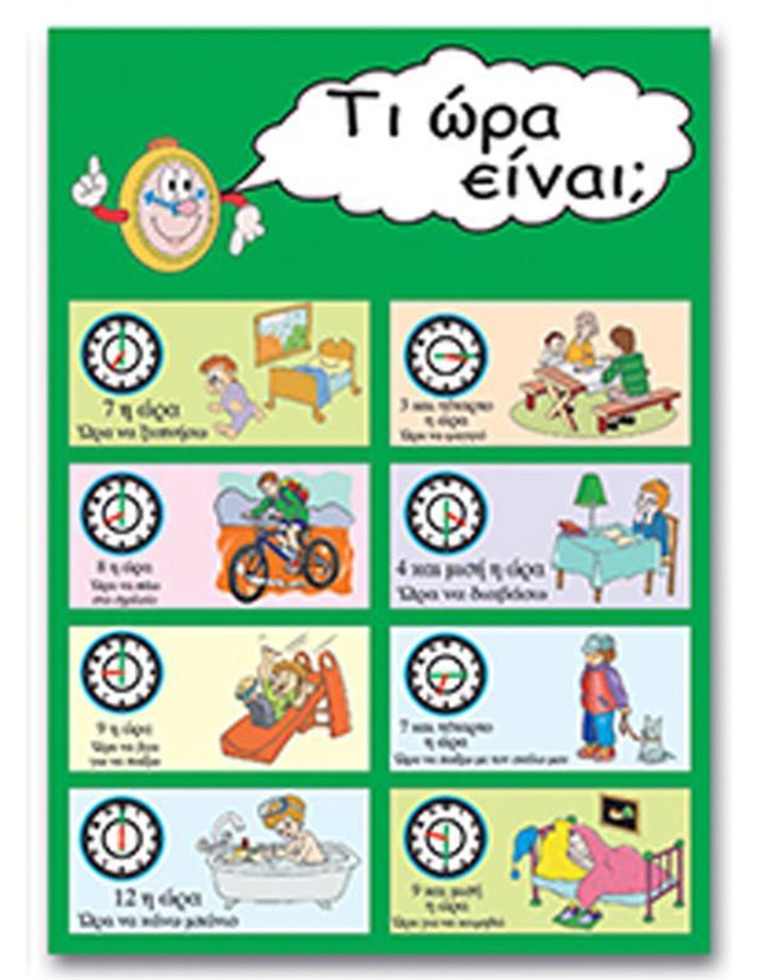 Εκπαιδευτική αφίσα "Τι ώρα είναι;". Πλαστικοποιημένη. Ιδανική για σχολεία, νηπιαγωγεία, παιδικούς σταθμούς, αλλά και παιδικά δωμάτια. Διαστάσεις: 50x70εκ.