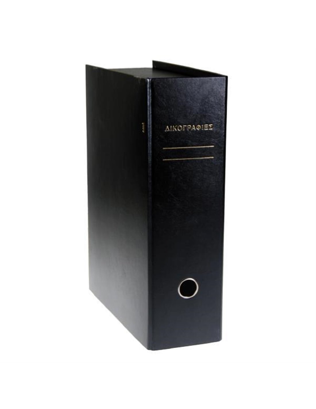 Κουτί σκληρό δερματίνη πολυτελείας. Ιδανικά για δικηγόρους, συμβολαιογράφους κ.α. Με τυπωμένη τη λέξη "Δικογραφίες" στη ράχη. Δυνατότητα κάθετης ή οριζόντιας τοποθέτησης. Καθαρίζεται με βρεγμένο πανί. Δυνατότητα εκτύπωσης στοιχείων δικηγορικού γραφείου. Διαστάσεις: Υ37x28x10εκ. Χρώμα: Μαύρο.