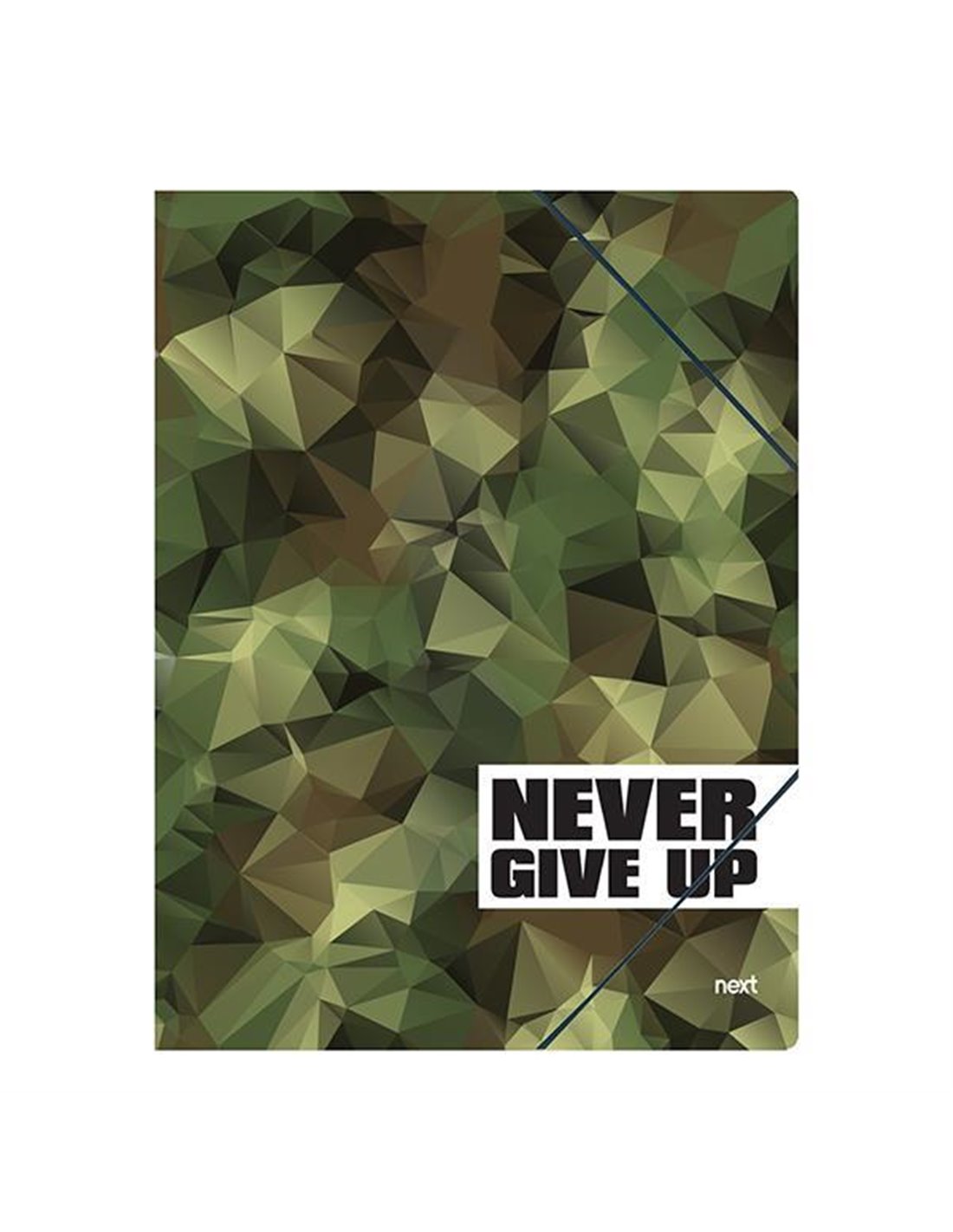 Next φάκελος λάστιχο "Never Give up", με ματ πλαστικοποίηση. Διαστάσεις: Υ35x25εκ.