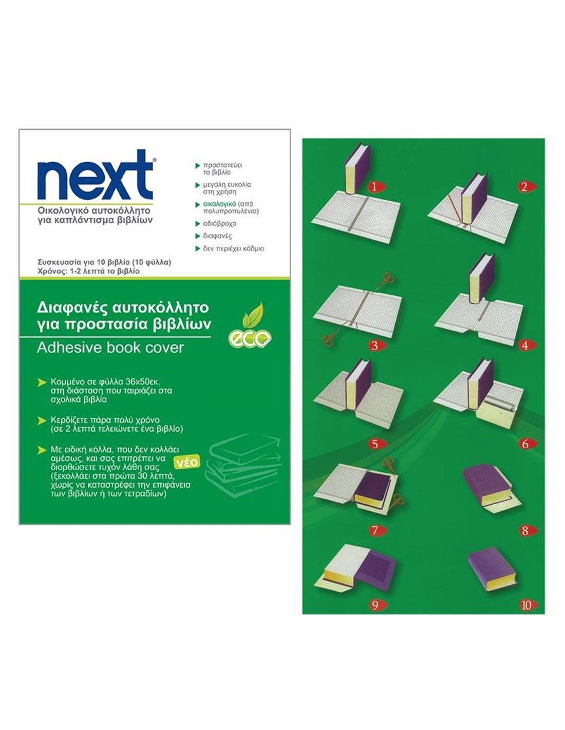 Διάφανα αυτοκόλλητα φύλλα για καπλάντισμα. Πακέτο 10 φύλλων. Κομμένα φύλλα σε μέγεθος κατάλληλο για σχολικά βιβλία. Σας απαλλάσει απο το κόψιμο των ρολλών. Οικολογικό αυτοκόλλητο από πολυπροπυλένιο. Δεν περιέχει κάδμιο. Δεν χρησιμοποιείται pvc. Περιέχει μια ειδική κόλλα η οποία ξεκολλά μέσα στα πρώτα λεπτά χωρίς να καταστρέφει την επιφάνεια των βιβλίων ή των τετραδίων. Διαστάσεις: 50x36εκ.