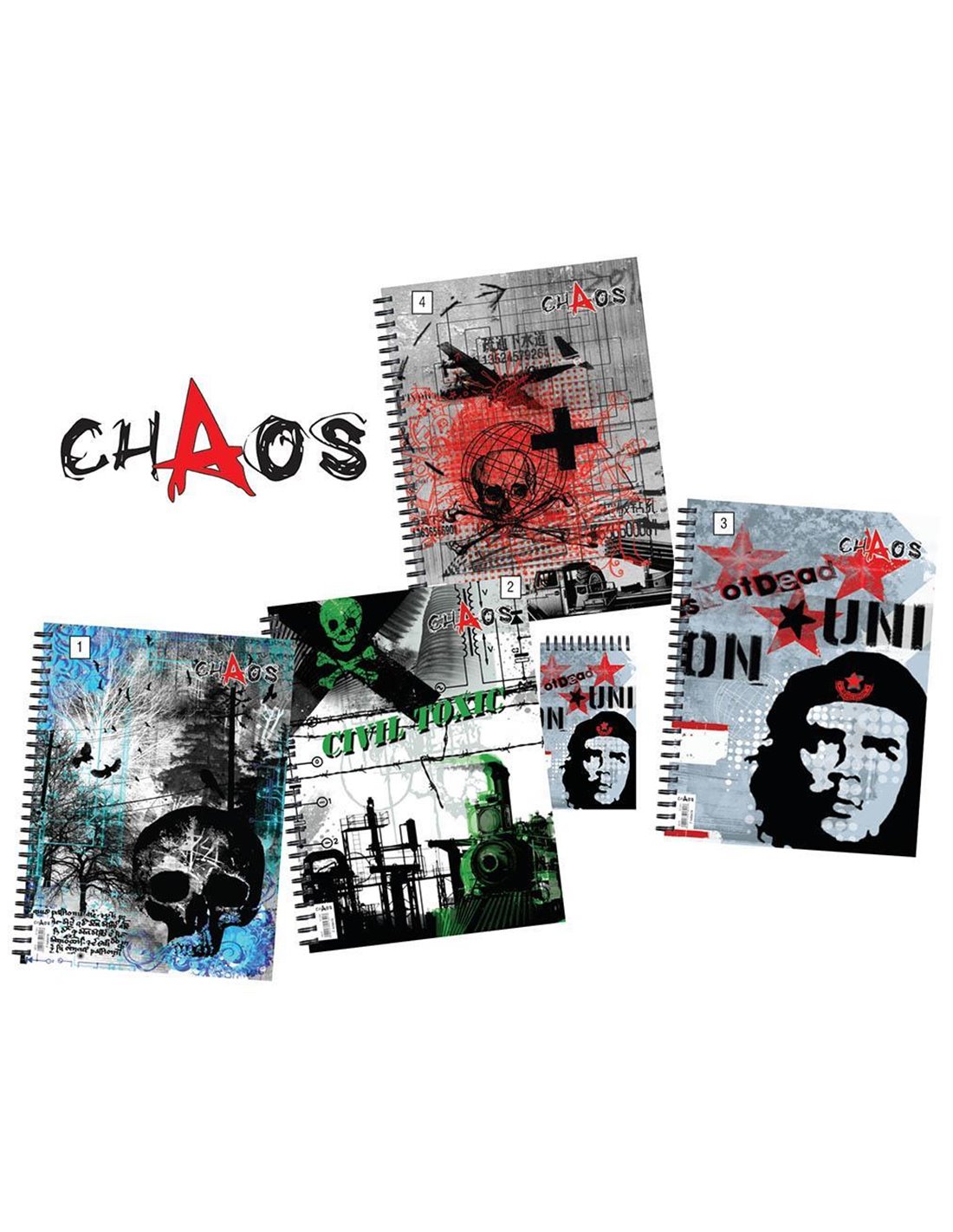 Τετράδιο σπιράλ chaos mini. Με διπλό σπιράλ πολυτελείας,σκληρό εξώφυλλο - οπισθόφυλλο 1200γρ. Εκτύπωση σε ειδικό χαρτί στο εξώφυλλο και τοπικό UV. Κοκτέηλ 2 σχέδια. Διαστάσεις: 8x15εκ.