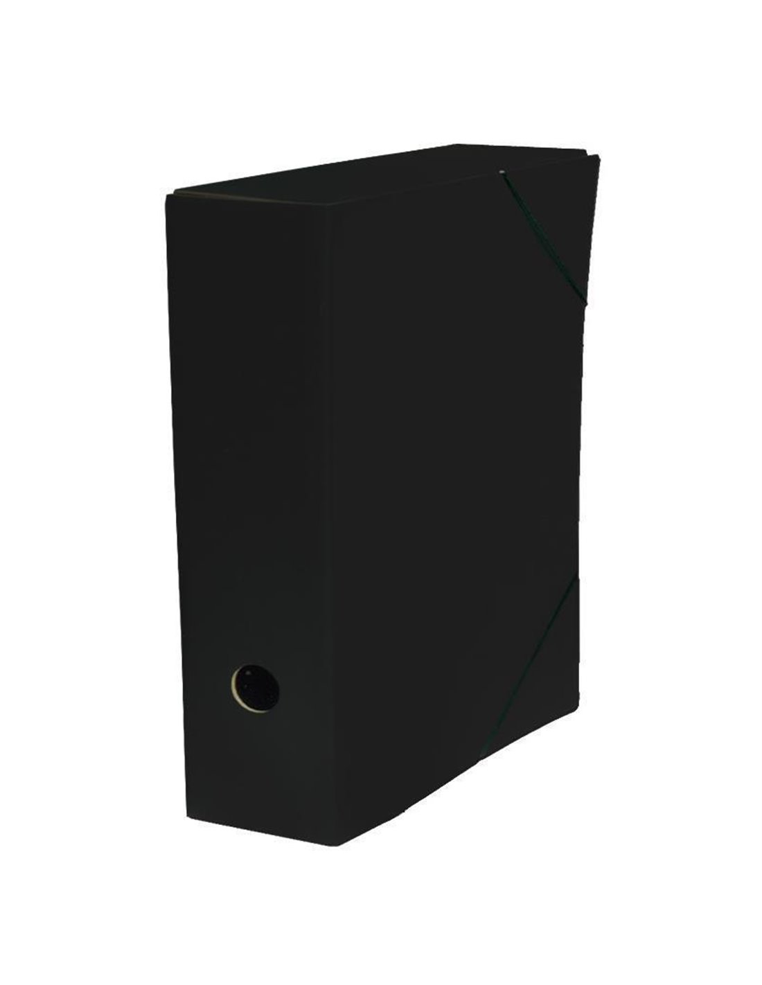 Κουτί με λάστιχο classic-υφασματόχαρτο. Eσωτερικά συμπαγές χαρτόνι 900γρ. Διαστάσεις: Υ33.5x25x8εκ. Χρώμα: Μαύρο.
