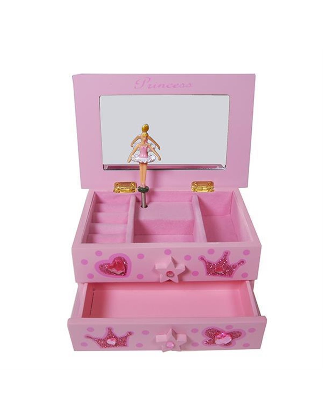 Το μουσικό κουτί περιέχει μια μπαλαρίνα η οποία περιστρέφεται υπο τους ήχους της λίμνης των κύκνων, κάθε φορά που ανοίγετε το κουτί.
