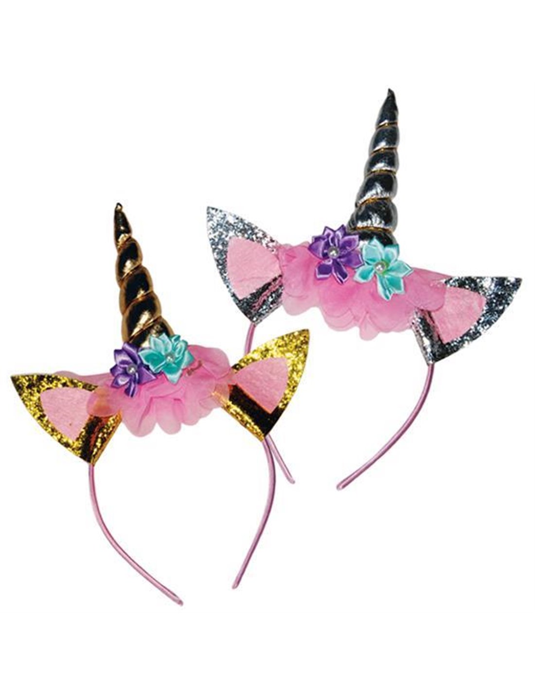 Πανέμορφη στέκα μαλλιών με θέμα τον μονόκερο, διακοσμημένη με λουλούδια και αυτάκια για ξεχωριστές εμφανίσεις που θα εντυπωσιάσουν! Κατάλληλη για παιδιά άνω των 3 ετών. Σε δυο αποχρώσεις, ασημί και χρυσό. Τυχαία επιλογή χρώματος. Διαστάσεις: 26x18 εκ