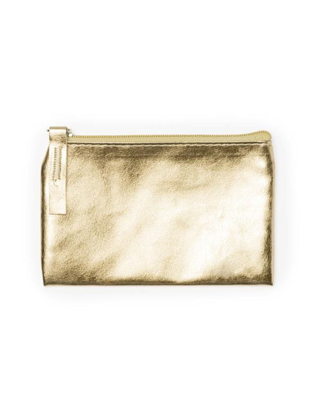 Τσαντάκι PU γυαλιστερό χρυσό με ασορτί φερμουάρ και λαβή. Κατάλληλο για κέρματα ή μικροπράγματα. Διαστάσεις: 12x0,5x8,5εκ.