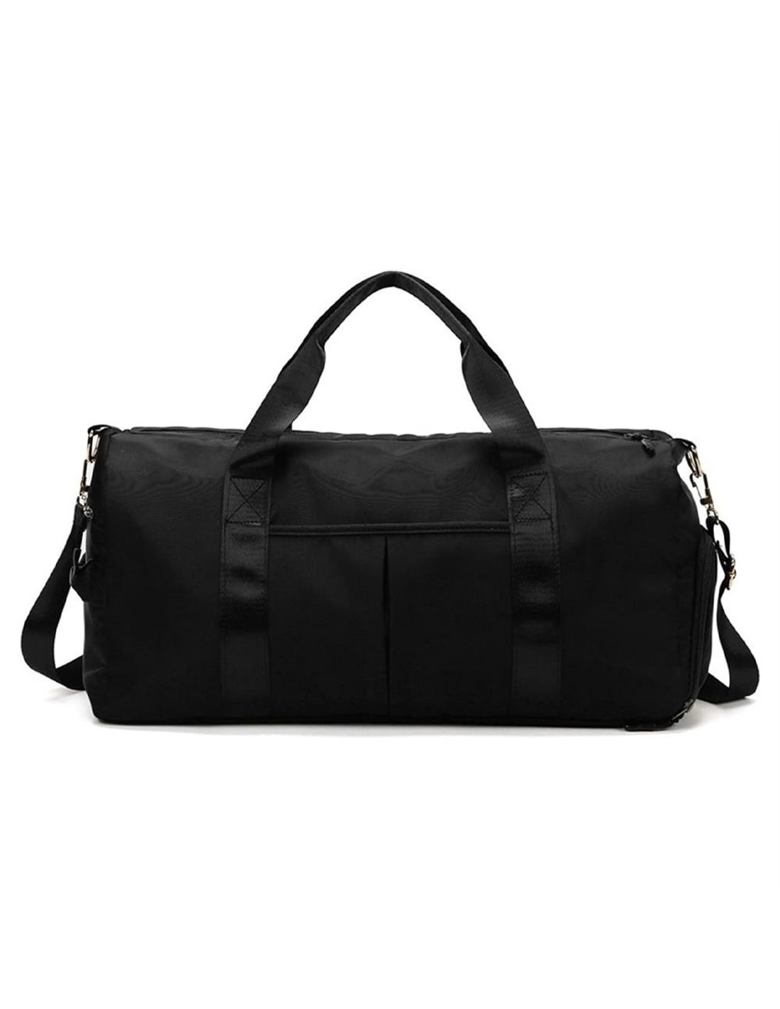 Πρακτικός και κομψός σάκος σε μαύρο χρώμα, ιδανικός για το γυμναστήριο ή σύντομες αποδράσεις. Διαθέτει εξωτερική μπροστινή θήκη, ειδική λαβή για εύκολη τοποθέτηση πάνω σε βαλίτσα, πλαινή θήκη και ξεχωριστό χώρο για παπούτσια. Περιλαμβάνει επίσης αδιάβροχη εσωτερική θήκη για υγρά ή βρεγμένα ρούχα και ρυθμιζόμενο ιμάντα ώμου για άνετη μεταφορά.