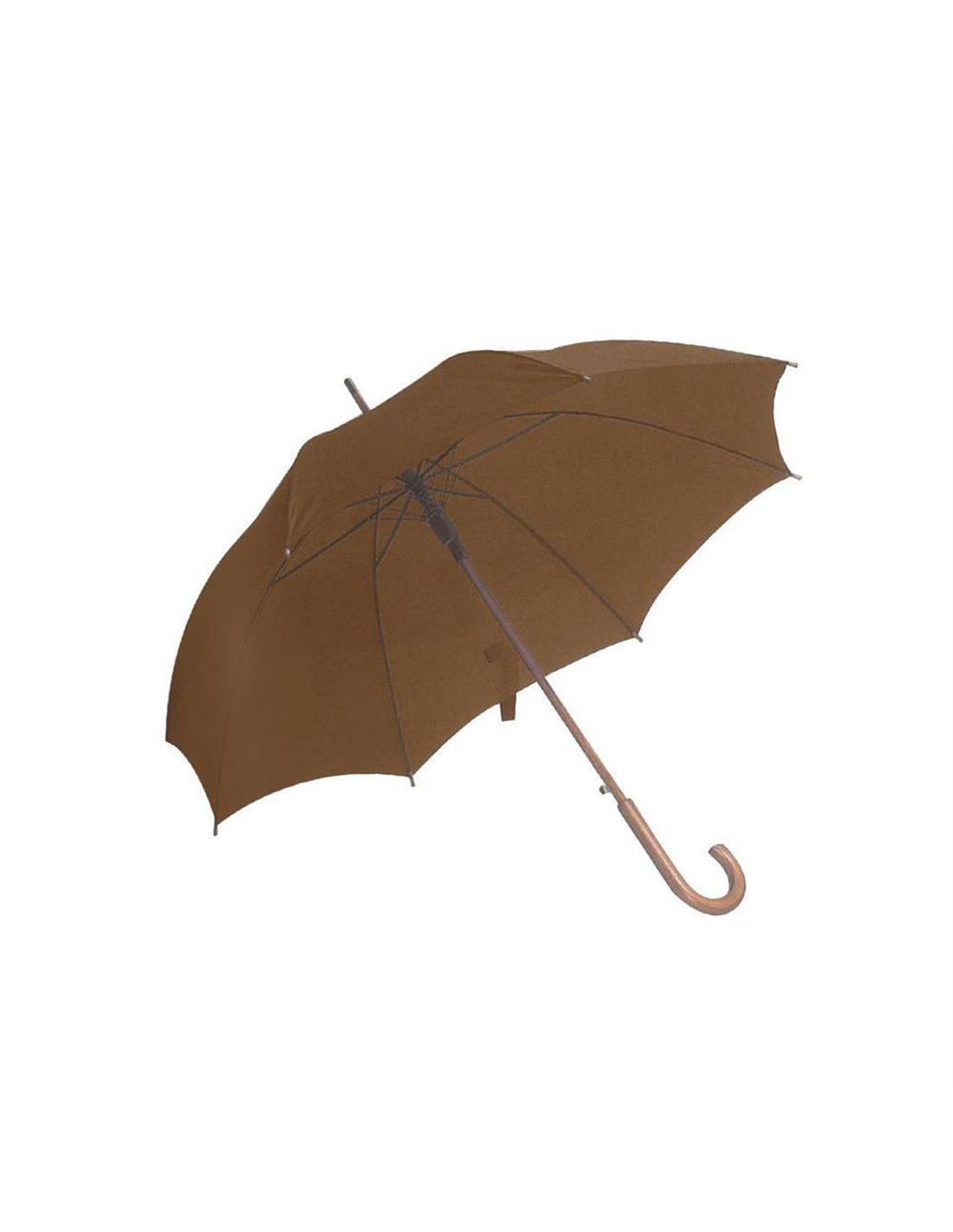 Ομπρέλα βροχής αυτόματη καφέ. Ξύλινο χερούλι. Διάμετρος: Ø105εκ.