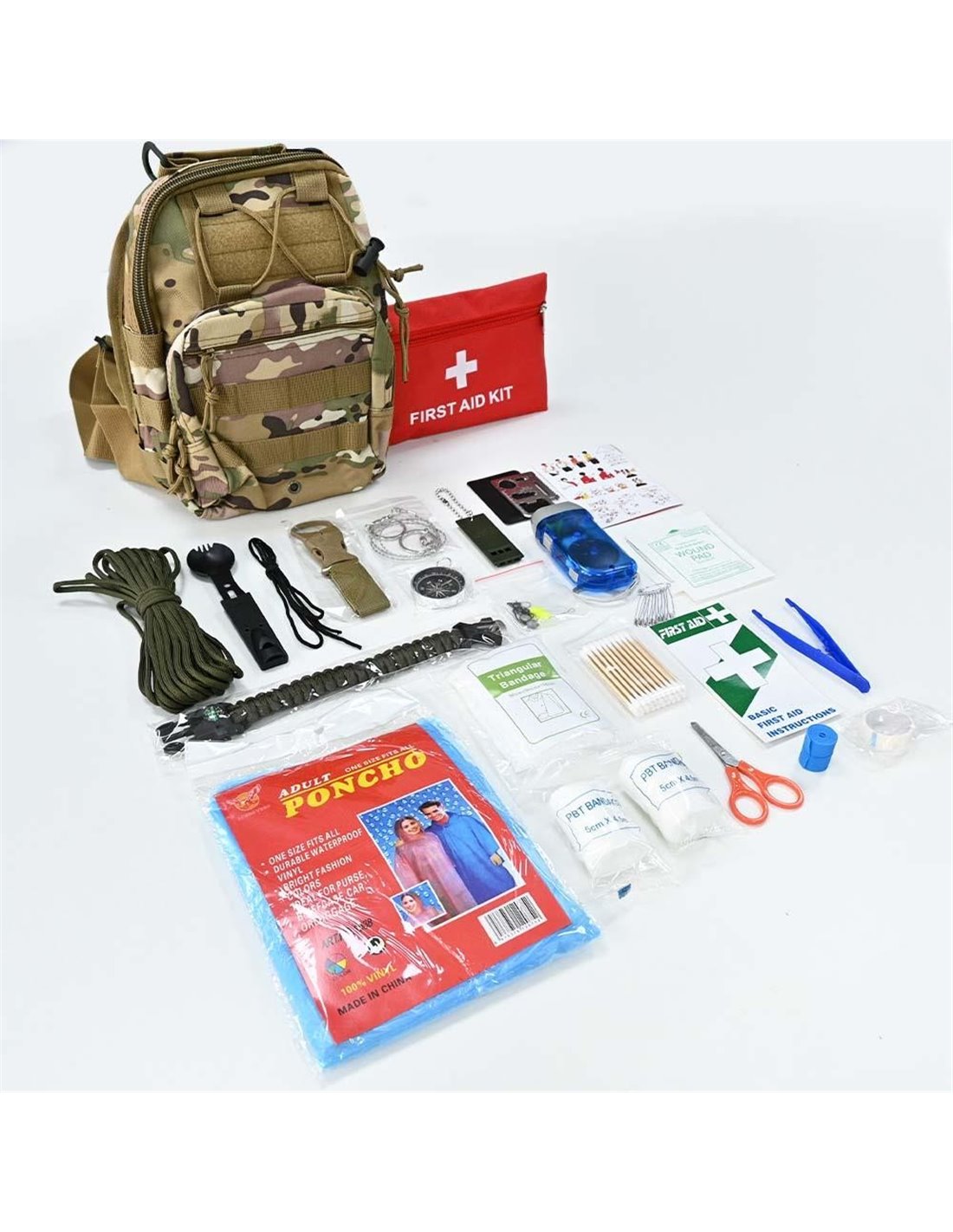 Ολοκληρωμένο σετ επιβίωσης και πρώτων βοηθειών για πεζοπορία, κατασκήνωση, ψάρεμα ή δραστηριότητες στη φύση. Ιδανικό για χρήση σε καταστάσεις έκτακτης ανάγκης, εκδρομές ή προετοιμασία EDC (Every Day Carry).