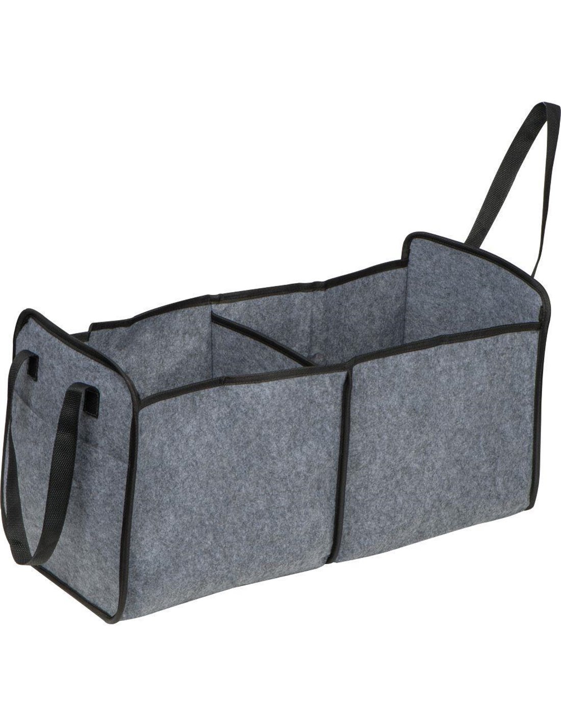 Τσάντα χώρου αποσκευών CAR-GADGET, αναδιπλούμενη: 2 θήκες για μεγάλο αποθηκευτικό χώρο, 2 ενσωματωμένες λαβές μεταφοράς. Μπορεί να διπλωθεί για εξοικονόμηση χώρου χάρη στην ελαστική ζώνη όταν δεν χρησιμοποιείται. Διαστάσεις: 51x32x26εκ, ανοικτή, 32x26x4εκ, διπλωμένη. RPET τσόχα. Χρώμα: γκρι