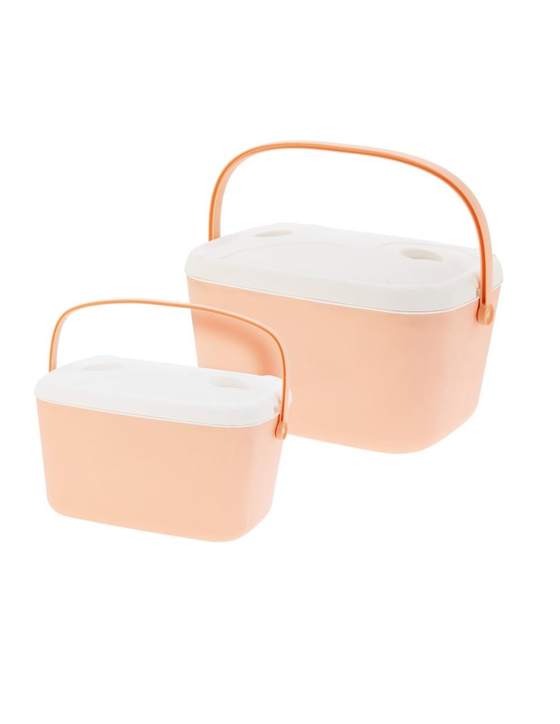 Ανθεκτικό και πρακτικό σετ 2 ψυγείων μεταφοράς σε ροζ χρώμα – 30 λίτρα και 15 λίτρα – ιδανικό για την παραλία, το κάμπινγκ, τις εκδρομές ή τα ψώνια.Από PP-PE-EPS (πολυπροπυλένιο, πολυαιθυλένιο και διογκωμένη πολυστερίνη).Μόνωση: Εσωτερική στρώση styrofoam 1cm για διατήρηση της δροσιάς. Λευκό καπάκι με ανάγλυφο σχέδιο "COOL", τεχνολογία blow mould. Χρώμα: Ροζ.
