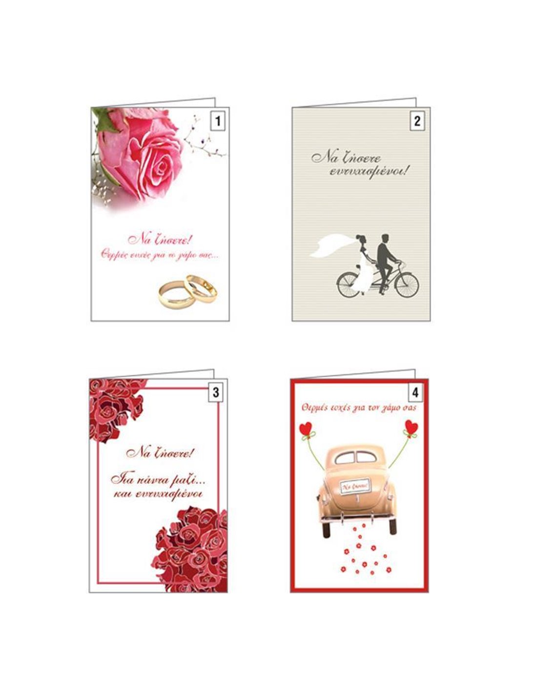 Ευχετήριες κάρτες γάμου 12x17εκ, 4 σχέδια κοκτέηλ