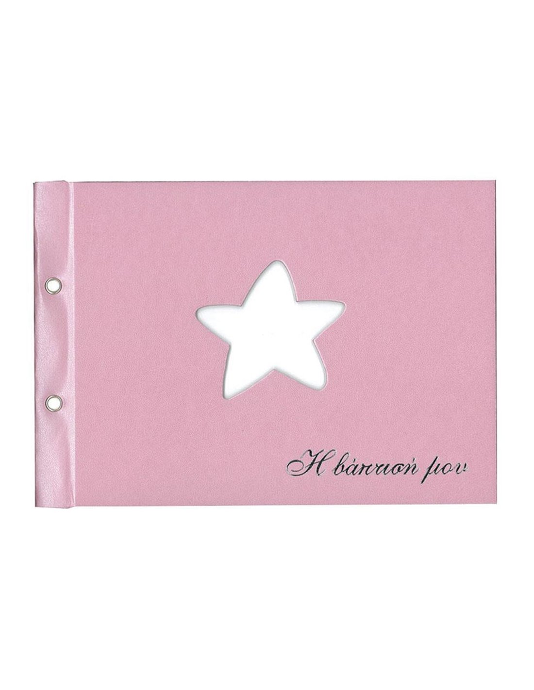 Βιβλίο ευχών βάπτισης "waves" ροζ. Με κοπτικό αστέρι για να μπαίνει εσωτερικά η φωτογραφία του μωρού. Με 24 εσωτερικά λευκά φύλλα από χαρτί woodfree 140γρ. Για τις ευχές και εντυπώσεις τον καλεσμένων σας. Διαστάσεις: 31x22εκ.
