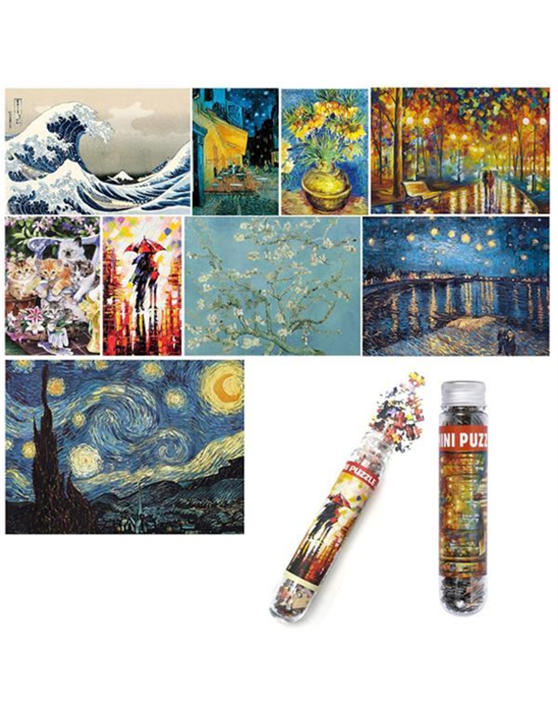 Πρωτότυπα mini παζλ σε διάφανο σωλήνα, που θα σας καταπλήξουν. Διαθέσιμα σε 9 διάφορετικά σχέδια κοκτέηλ πίνακες διάσημων ζωγράφων. Προτείνονται για ενήλικες και παιδιά άνω των 8 ετών. Κατάλληλα και για δώρο! Διαστάσεις: 10x15εκ. Τυχαία επιλογή σχεδίου.