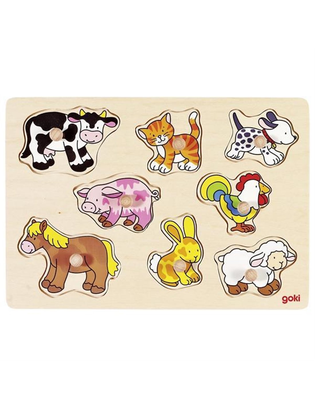 Ξύλινο παζλ- σφηνώματα 8 τεμαχίων με θέμα τα ζώα της φάρμας.
