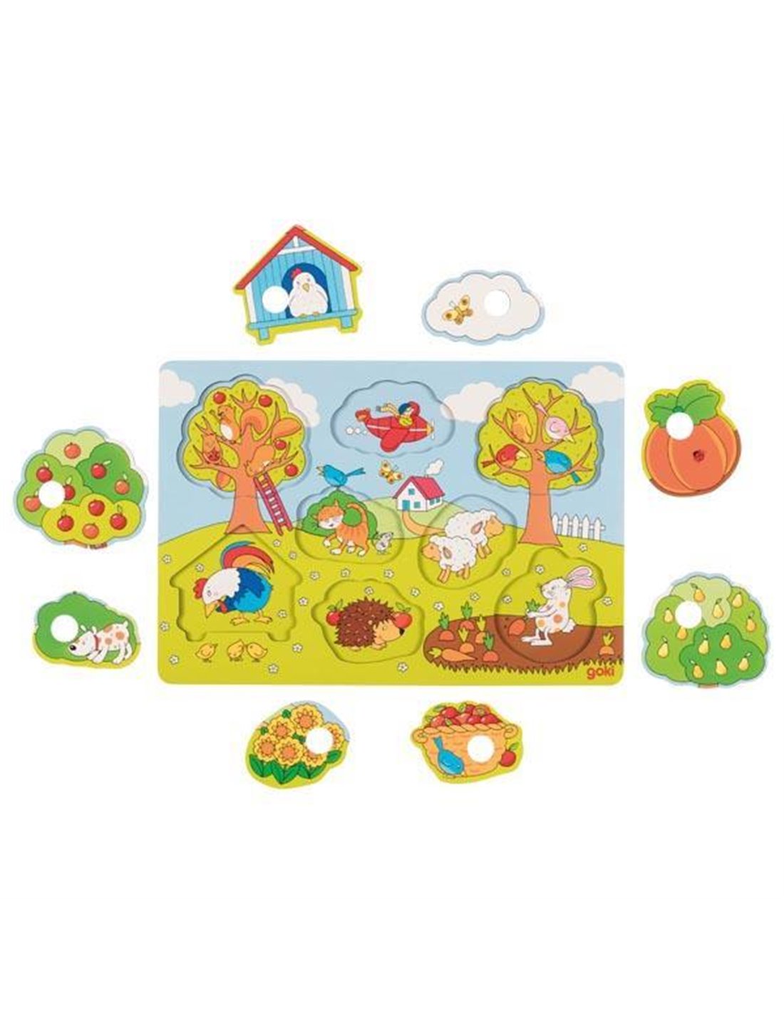 Goki παζλ - σφηνώματα  ξύλινο "Στον κήπο" 30x21εκ. 8 τεμαχίων