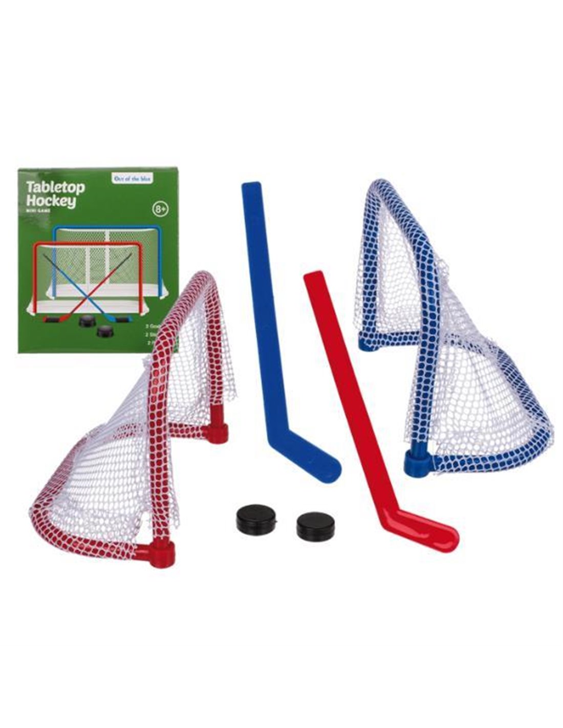 Επιτραπέζιο παιχνίδι χόκευ για 2 άτομα. Περιλαμβάνει εστίες, μπαστούνια και μπάλες. Κατάλληλο για ηλικίες 8 ετών +.