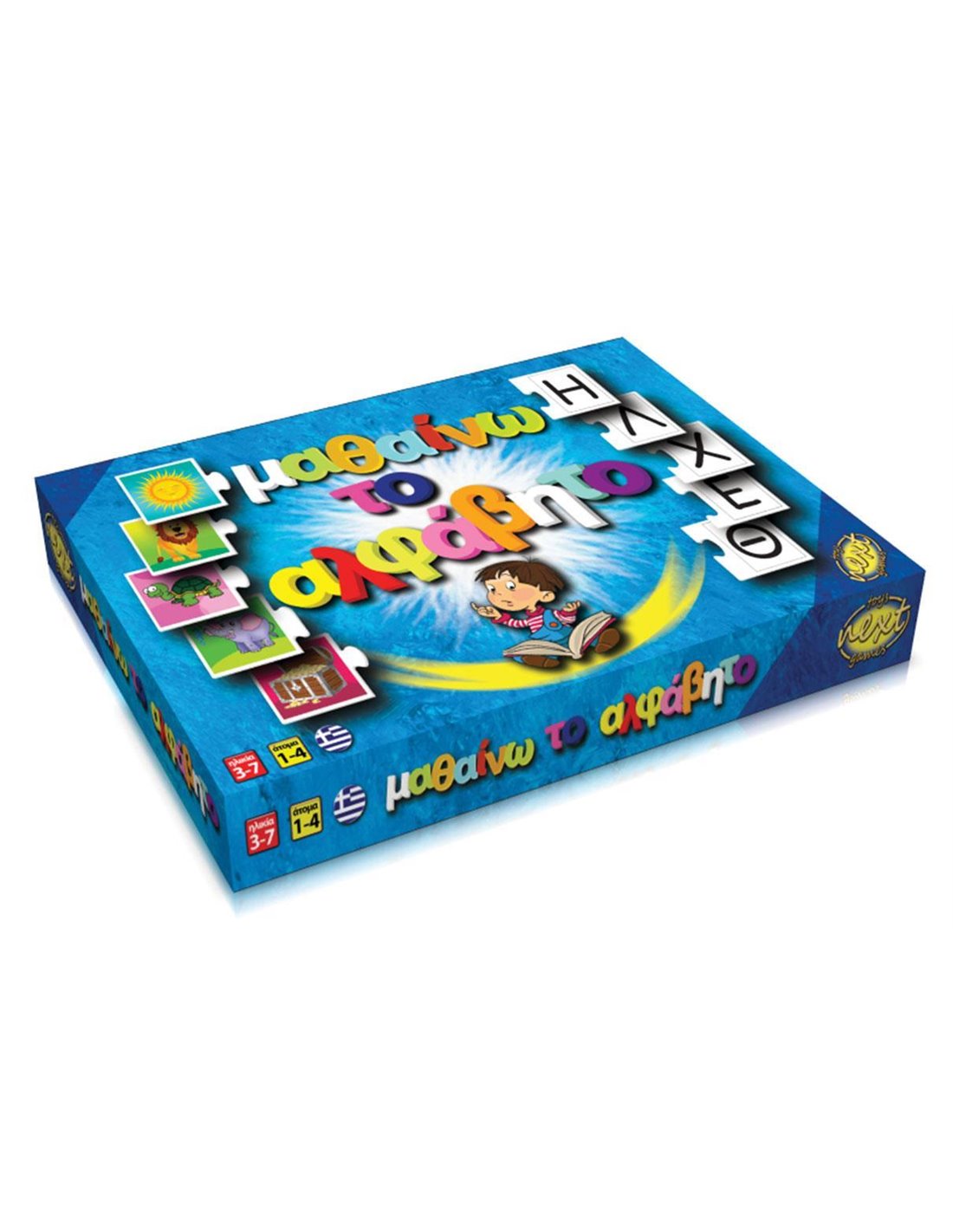 Εκπαιδευτικό παζλ με ζεύγη καρτών "Μαθαίνω το αλφάβητο". Το κουτί περιέχει 24 ζεύγη καρτών, από σκληρό χαρτόνι πάχους 2mm. Κατάλληλο για παιδιά ηλικίας 3-7 ετών, για 1-4 παίκτες. Διαστάσεις κουτιού Υ3Χ28Χ18εκ. Κατασκευάζεται στην Ελλάδα.