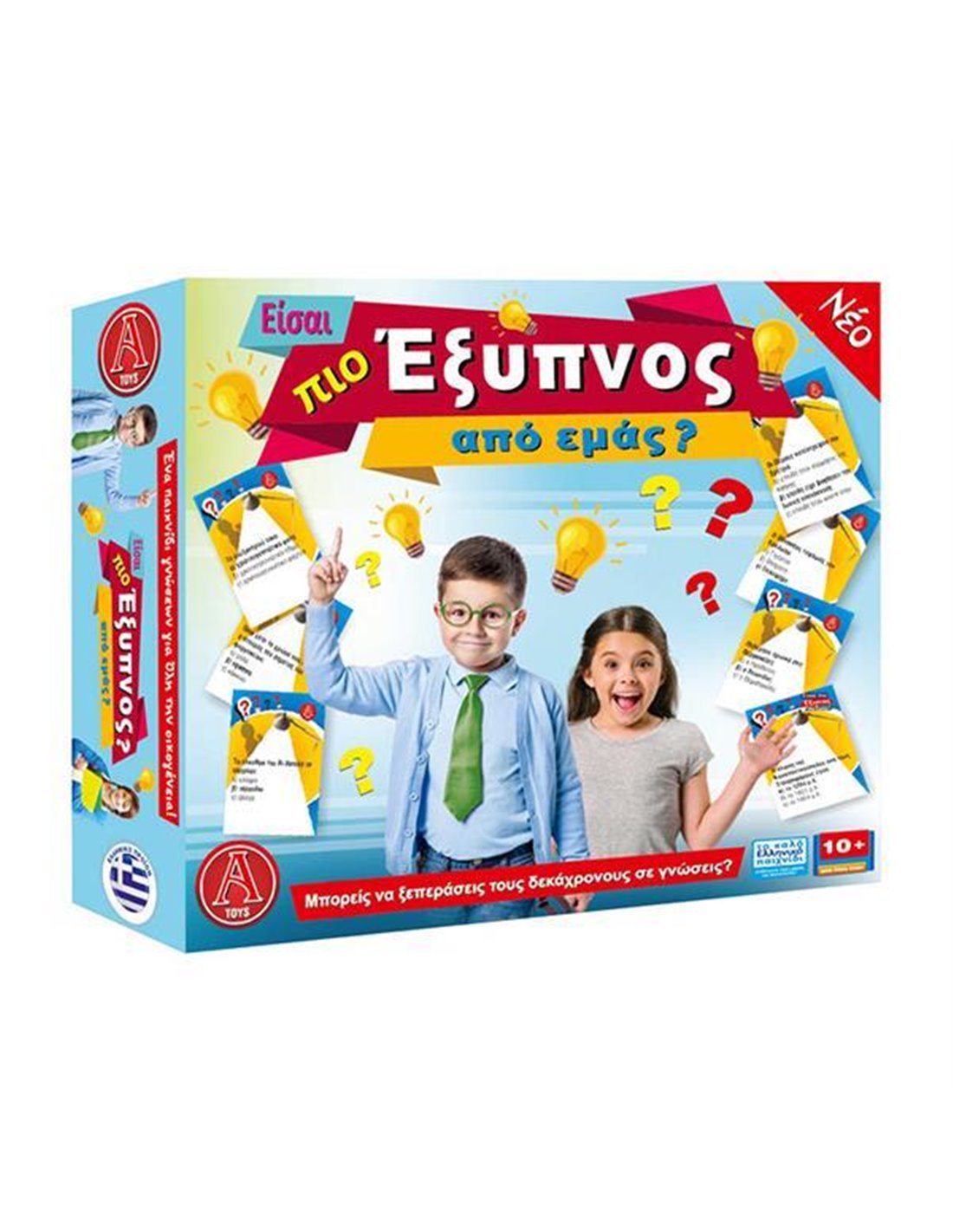 Επιτραπέζιο παιχνίδι αντίστοιχο του "Είσαι πιο έξυπνος από ένα 10χρονο". Διαστάσεις κουτιού Υ7,5x42x25εκ. Παίξτε και δείτε αν περνάτε την τάξη! Ένα επιτραπέζιο παιχνίδι για 2 -4παίχτες. Κατάλληλο για ηλικίες 8 ετών +.