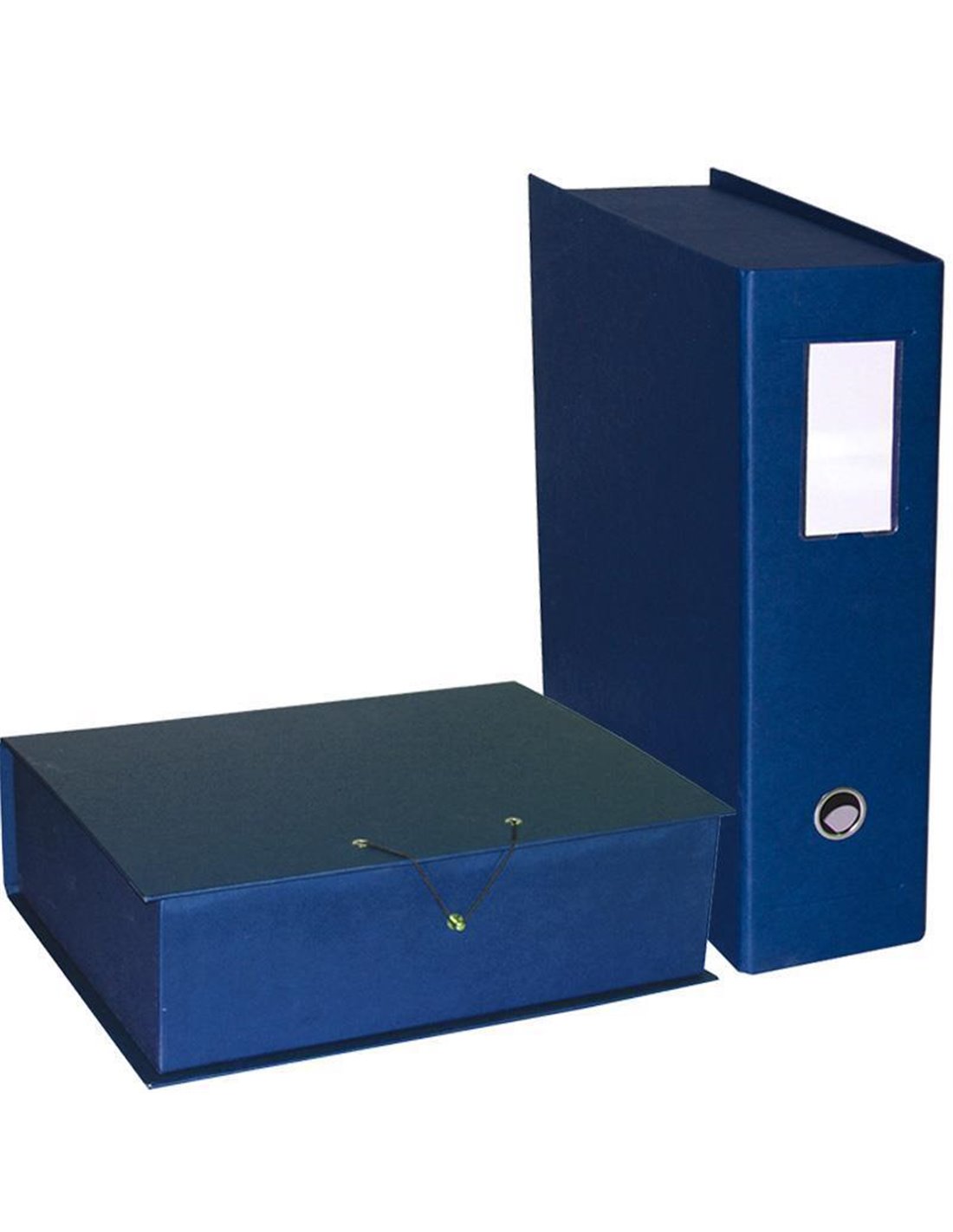 Κουτί σκληρό classic-υφασματόχαρτο. Ιδανικά για δικηγόρους, συμβολαιογράφους κ.α. Με χάρτινη λευκή ετικέτα σε αυτοκόλλητη διάφανη θήκη και μεταλλικό κρίκο στη ράχη. Δυνατότητα κάθετης ή οριζόντιας τοποθέτησης. Καθαρίζεται με βρεγμένο πανί. Δυνατότητα ψηφιακής εκτύπωσης της ετικέτας (με logo του δικηγορικού γραφείου). Διαστάσεις: Υ37x28x10εκ. Χρώμα: Μπλε.