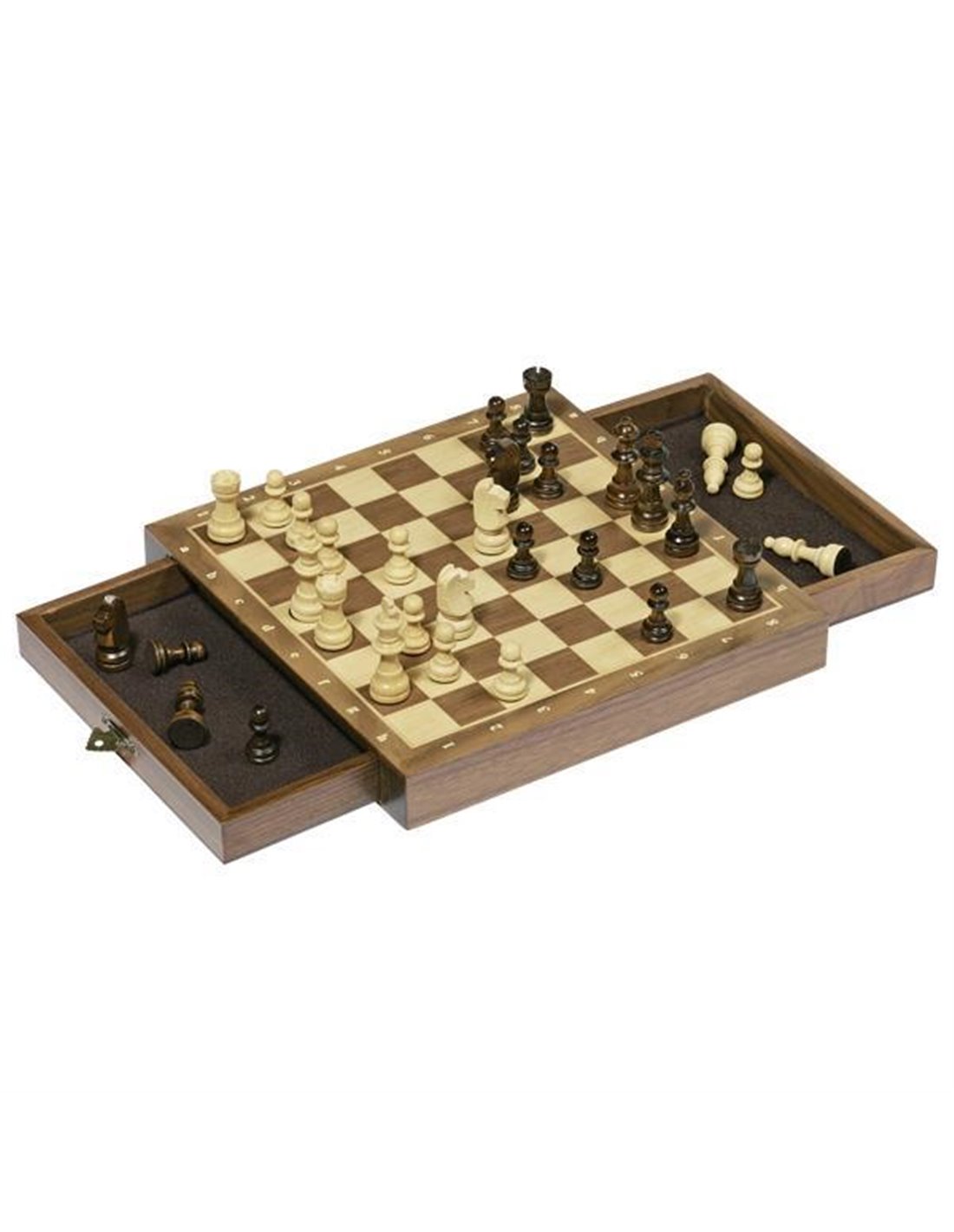Ξύλινο μαγνητικό σκάκι με πιόνια 25x25εκ. Το σκάκι έχει ανοιγόμενες θήκες στο πλάι, για την αποθήκευση των πιονιών. Κατάλληλο για ηλικίες 7 ετών +.