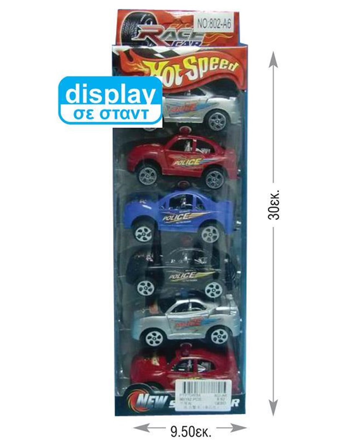 Σετ με 6 πλαστικά αυτοκινητάκια σε blister. Διαστάσεις αυτοκινήτου : Υ3,5x9,5εκ. Διαστάσεις blister: Υ30x9,5εκ. Κατάλληλο για ηλικίες 2 ετών +.