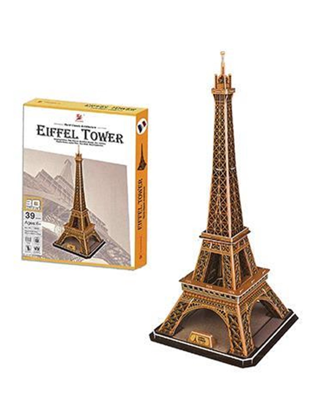 Παζλ τρισδιάστατο "Πύργος του Αϊφελ" 39 τεμαχίων Υ54x23x23εκ. Διάσταση κουτιού Υ31x22x3,5εκ. Ιδανικό για να διακοσμήσεις το χώρο σου μ΄ένα από τα σπουδαιότερα αρχιτεκτονικά μνημεία στον κόσμο! Κατάλληλο για ηλικίες 6 ετών +
