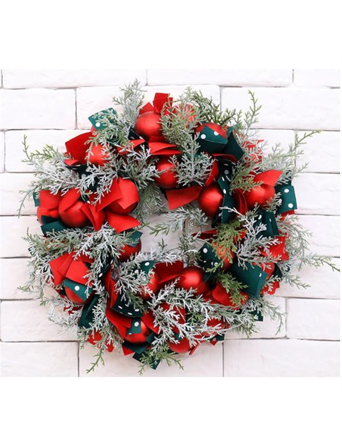 Χριστουγεννιάτικο διακοσμητικό στεφάνι με διάφορα κλαδιά, μπάλες και κορδέλες.