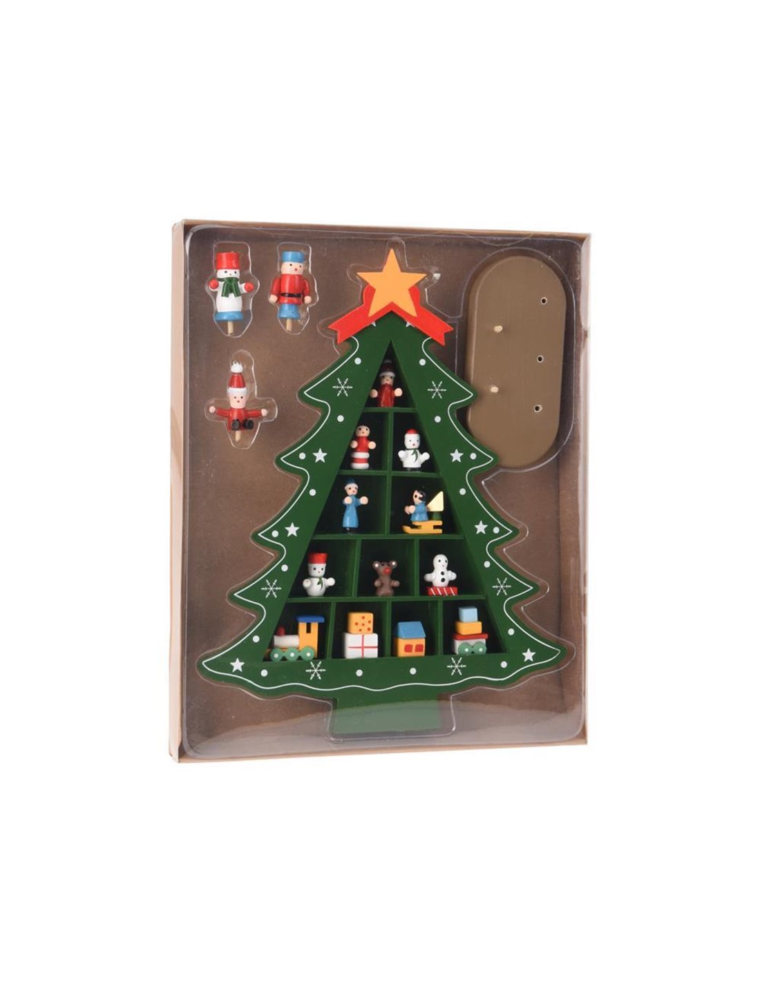 Ξύλινο χριστουγεννιάτικο δέντρο ύψους 30,5εκ. Το σετ περιλαμβάνει μικρά κρεμαστά διακοσμητικά-φιγούρες που αναδεικνύουν τη γιορτινή ατμόσφαιρα και χαρίζουν μοναδική πινελιά στη διακόσμηση. Ιδανικό για τραπέζι, ράφι ή για δώρο.