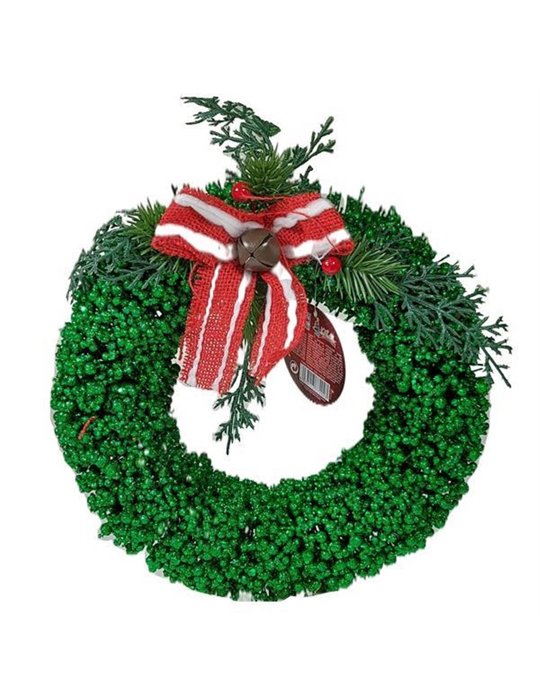 Χριστουγεννιάτικο διακοσμητικό στεφάνι, με κόκκινο-άσπρο φιόγκο, γκι και κουδουνάκι. Στολίστε την πόρτα, το μπαλκόνι ή τον τοίχο του σπιτιού σας. Διάμετρος 24 εκ.