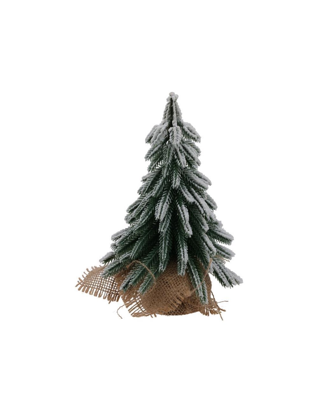 Χριστουγεννιάτικο δέντρο ύψους 24εκ., κατασκευασμένο από polyester με πράσινο χρώμα και χιονισμένο εφέ για χειμωνιάτικη ατμόσφαιρα. Η βάση του είναι από ξύλο πεύκου και τυλιγμένη με λινάτσα και βαμβάκι, δίνοντας φυσική και ζεστή όψη. Ιδανικό για τραπέζια, ράφια και μικρούς χώρους που χρειάζονται γιορτινή διακόσμηση.