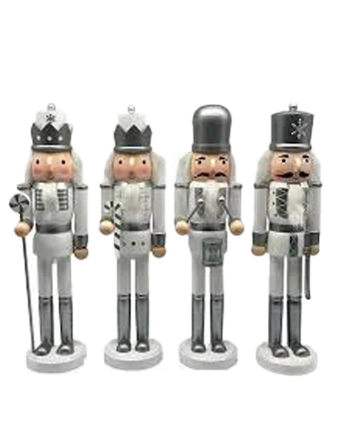 Ο Καρυοθραύστης σε ασημένιο χρώμα, είναι μια κομψή και γιορτινή διακοσμητική φιγούρα που αναδεικνύει την παραδοσιακή Χριστουγεννιάτικη αισθητική. Είναι κατασκευασμένος από ξύλο πεύκου και διατίθεται σε 4 διαφορετικά σχέδια με χρυσές λεπτομέρειες, που προσθέτουν μια πολυτελή πινελιά στη Χριστουγεννιάτικη διακόσμηση. Αυτός ο καρυοθραύστης είναι ιδανικός για να τοποθετηθεί σε ράφια, τραπέζια ή ακόμα και στο Χριστουγεννιάτικο δέντρο ως διακοσμητικό, ενισχύοντας το γιορτινό κλίμα του χώρου σας. Τυχαία επιλογή σχεδίου.