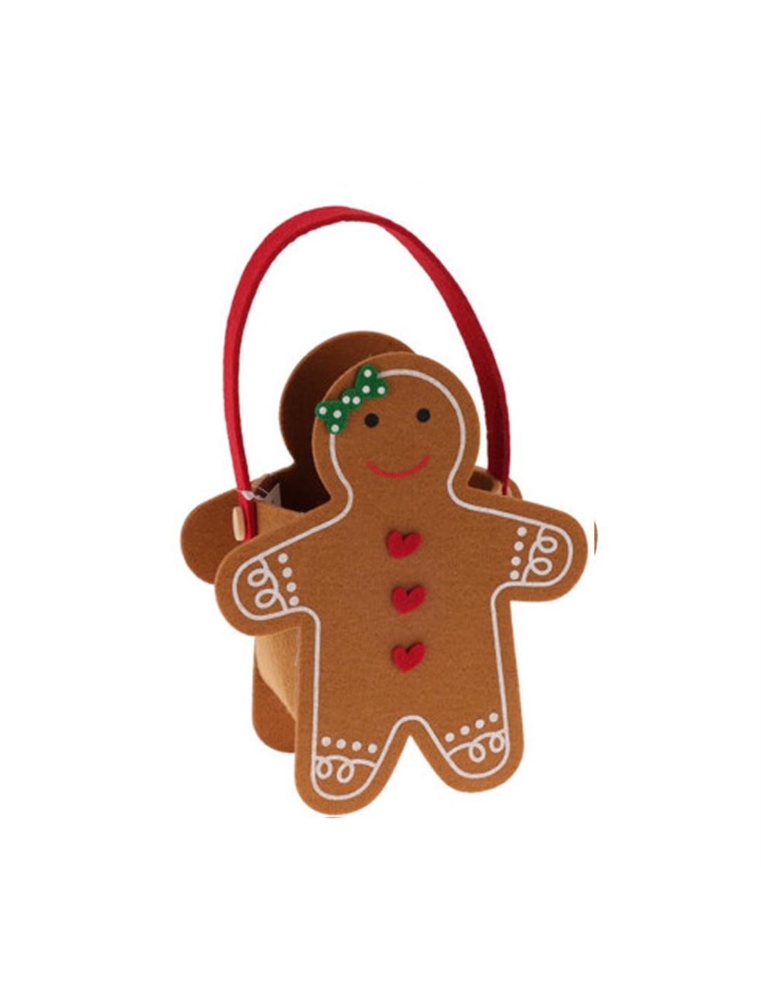 Το καλαθάκι από τσόχα με σχέδιο gingerbread έχει διαστάσεις Υ20x16,5x8,5εκ. και είναι ιδανικό για διακοσμητική χρήση την περίοδο των Χριστουγέννων. Το σχέδιο αποτυπώνει τη φιγούρα ενός gingerbread, προσδίδοντας μια παιχνιδιάρικη και παραδοσιακή χριστουγεννιάτικη αίσθηση. Ιδανικό για αποθήκευση μικρών αντικειμένων, χριστουγεννιάτικων γλυκών ή ακόμα και ως διακοσμητικό στοιχείο σε τραπέζι ή ράφι.