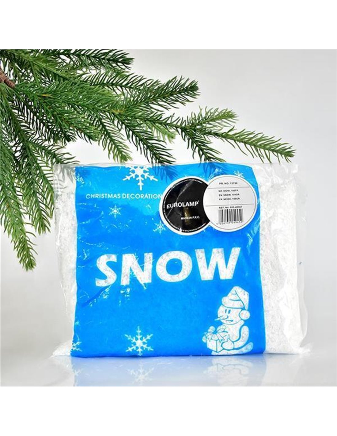 Χιόνι τεχνητό από πολυαιθυλένιο. Κατάλληλο για τον χριστουγεννιάτικο διάκοσμο, αλλά και για μακέτες. Σακουλάκι 100γρ.