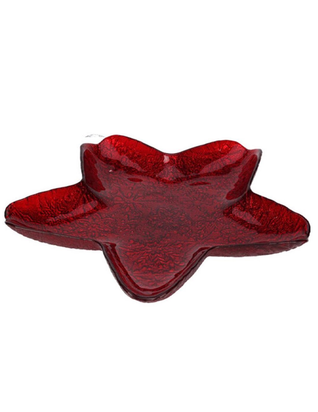 Η γυάλινη πιατέλα σε σχήμα αστεριού, με διάμετρο ∅30xΥ4εκ., προσθέτει μια γιορτινή και κομψή πινελιά σε κάθε τραπέζι ή χώρο. Το έντονο κόκκινο χρώμα της την καθιστά ιδανική επιλογή για εορταστικές περιστάσεις, όπως Χριστούγεννα ή Πρωτοχρονιά. Αυτή η πιατέλα μπορεί να χρησιμοποιηθεί για σερβίρισμα γλυκών, φρούτων ή άλλων εδεσμάτων, ή ακόμα και ως διακοσμητικό στοιχείο από μόνη της. Η γυάλινη κατασκευή της προσφέρει μια αίσθηση πολυτέλειας, ενώ το σχήμα της προσδίδει μια μοναδική και δημιουργική ατμόσφαιρα στο χώρο σας.