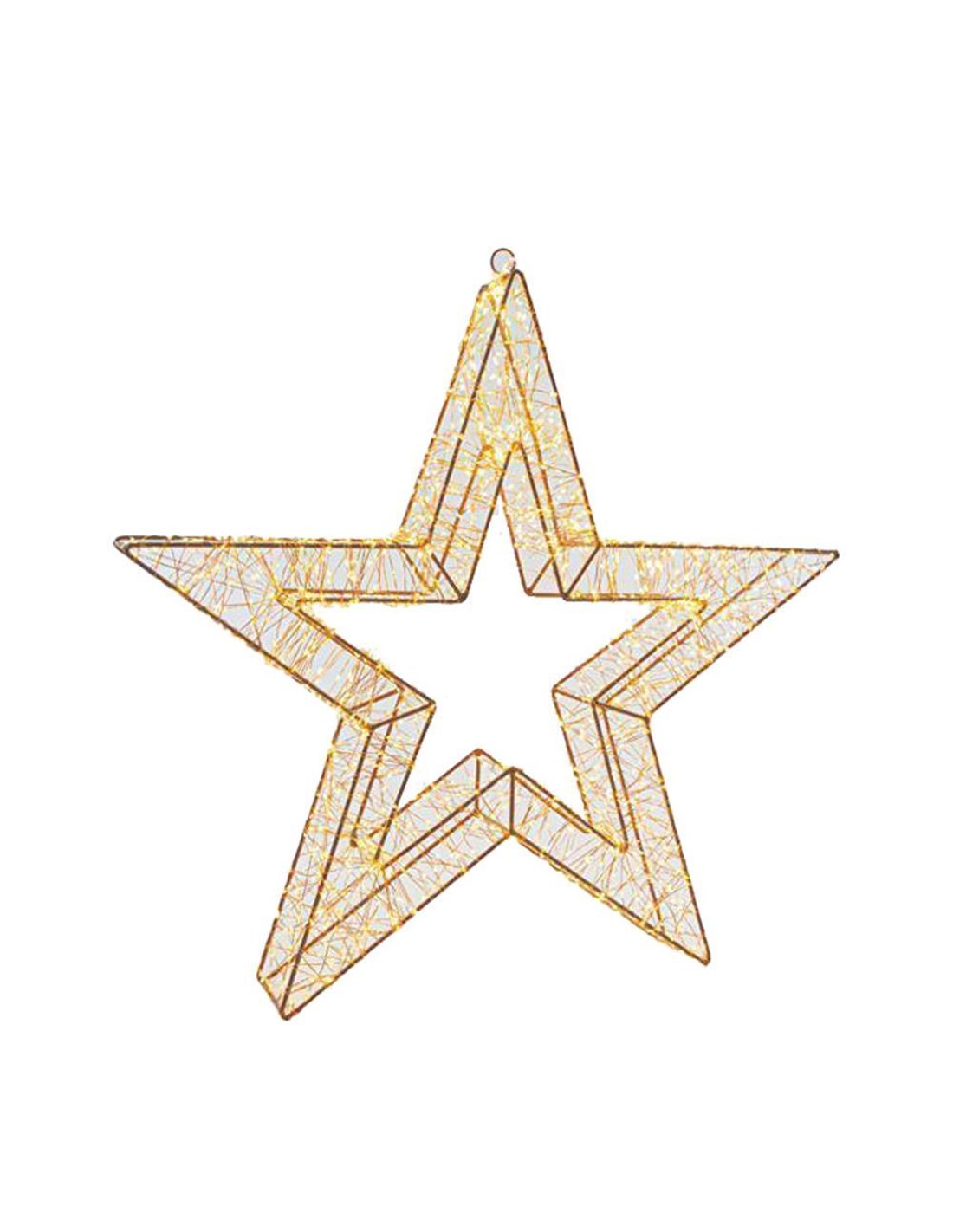 Το Αστέρι φωτιζόμενο είναι ένα διακοσμητικό στοιχείο με μοντέρνο και κομψό σχεδιασμό, κατασκευασμένο από σύρμα και εξοπλισμένο με 960 μικροσκοπικά LED σε ζεστό λευκό χρώμα. Το αστέρι διαθέτει λειτουργία χρονοδιακόπτη, η οποία το ανάβει για 6 ώρες και το σβήνει αυτόματα για 18 ώρες, προσφέροντας εξοικονόμηση ενέργειας και ευκολία στη χρήση. Είναι κατάλληλο για εσωτερική και εξωτερική χρήση, χάρη στον ανθεκτικό προσαρμογέα IP44 (αδιάβροχο), και διαθέτει καλώδιο μήκους 5 μέτρων, επιτρέποντας εύκολη τοποθέτηση. Στην κορυφή υπάρχει δακτύλιος για κρέμασμα, καθιστώντας το ιδανικό για χριστουγεννιάτικη διακόσμηση ή για να προσθέσει μια ατμοσφαιρική πινελιά στον χώρο σας.