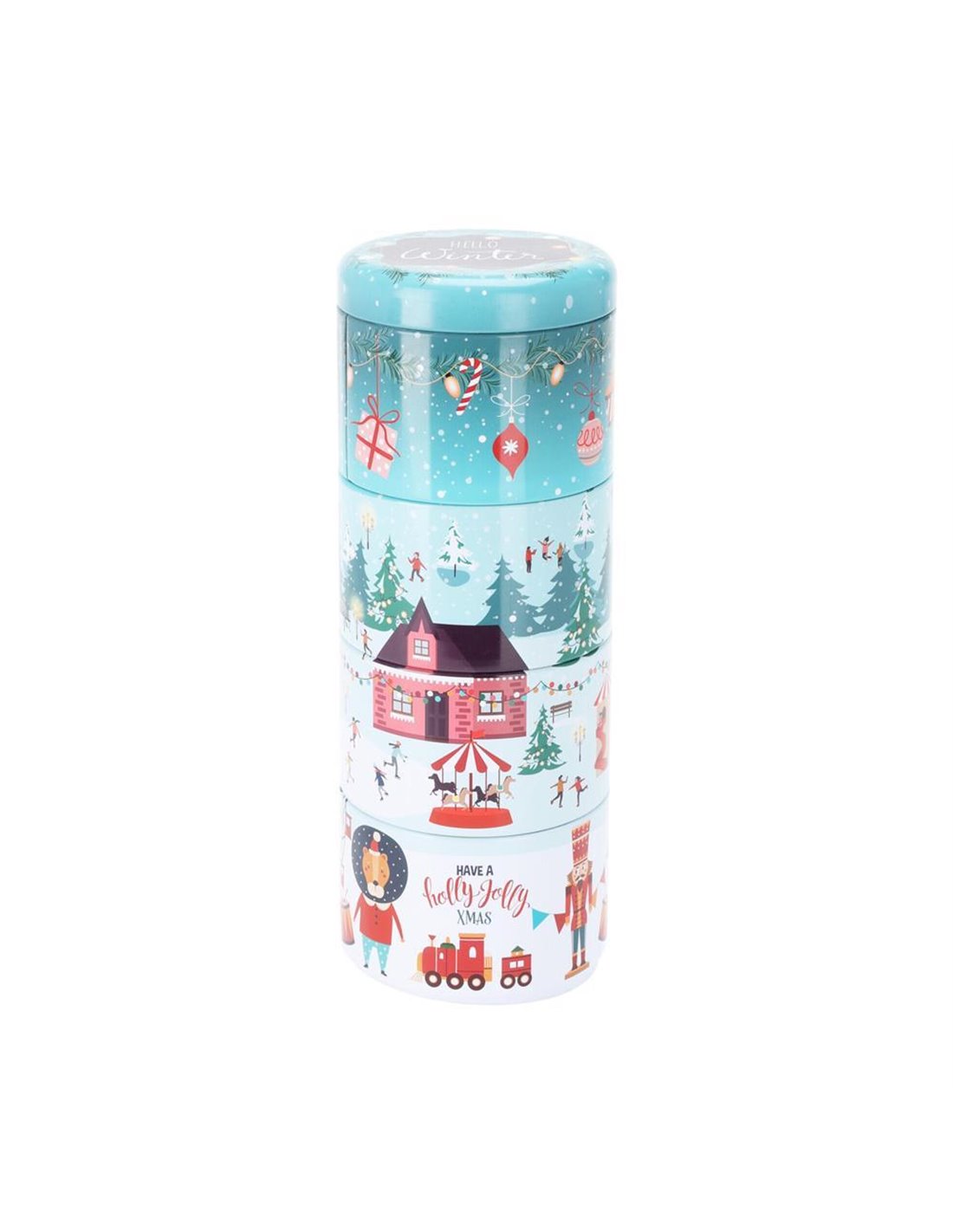 Το χριστουγεννιάτικο σετ 4 τεμαχίων περιλαμβάνει σκεύη αποθήκευσης που στοιβάζονται το ένα πάνω στο άλλο, δημιουργώντας μια γιορτινή παράσταση όταν συνδυάζονται. Τα σκεύη έχουν εορταστικά σχέδια, και κάθε κομμάτι του σετ προσθέτει στο συνολικό θέμα, σχηματίζοντας μια χριστουγεννιάτικη εικόνα. Αυτή η ιδιαιτερότητα το καθιστά όχι μόνο πρακτικό για αποθήκευση, αλλά και διακοσμητικό στοιχείο για την περίοδο των γιορτών. Διάσταση σκεύους ∅8,5xΥ5,5εκ.