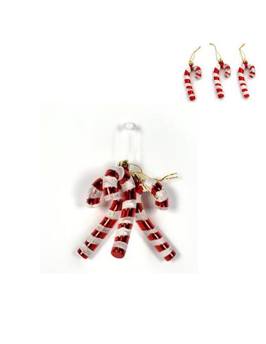 Χριστουγεννιάτικα στολίδια "Γλειφιτζούρια μπαστουνάκια" λευκά-κόκκινα Υ9x1,8x4,5εκ. σετ 3 τεμαχίων