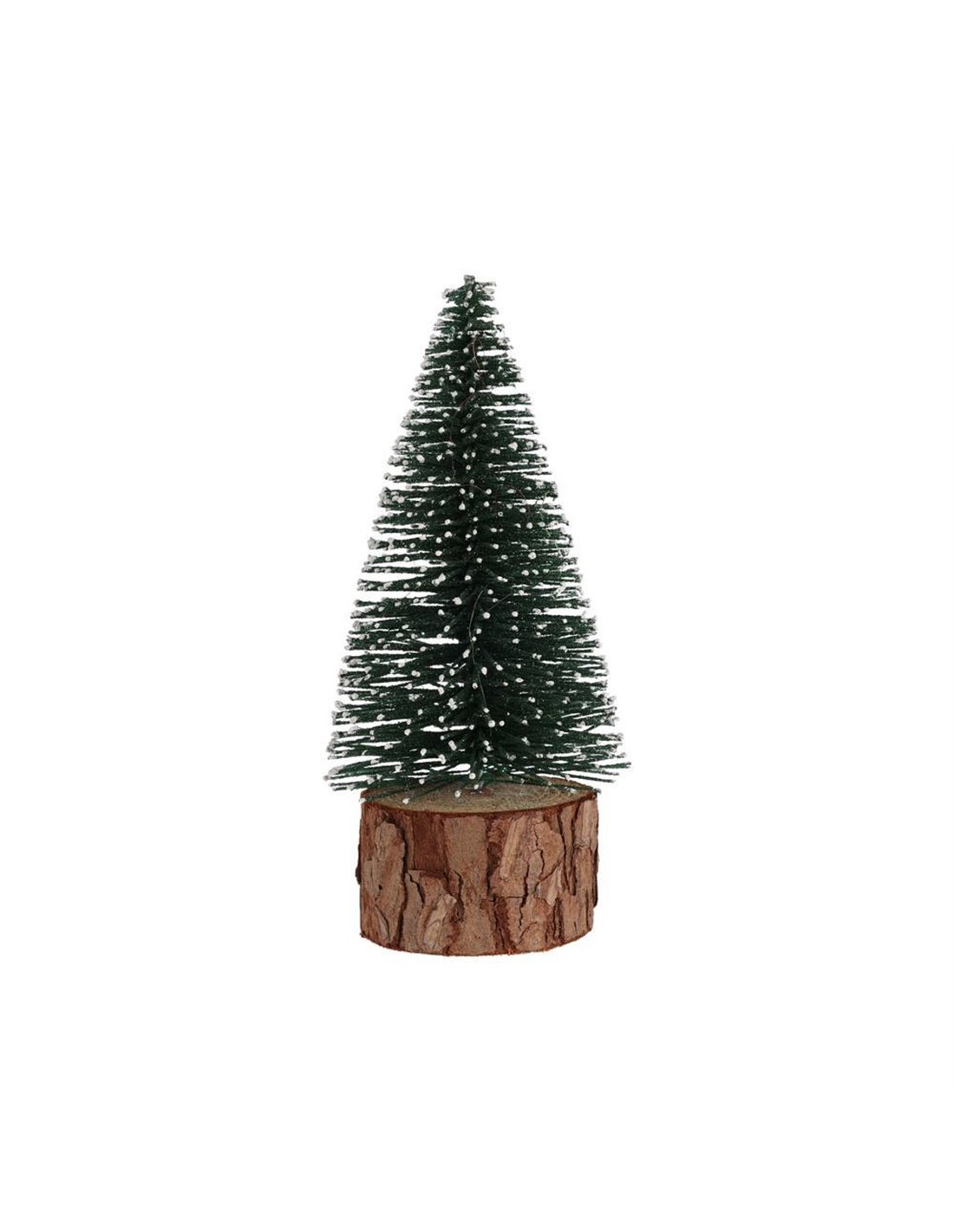 Μικρό χριστουγεννιάτικο δεντράκι με ξύλινη βάση, ιδανικό για να στολίσει τραπέζι, ράφι ή βιτρίνα. Με πράσινα κλαδιά και λευκές άκρες που θυμίζουν χιονισμένο τοπίο, αποτελεί διαχρονικό διακοσμητικό στοιχείο που ταιριάζει σε κάθε γιορτινή σύνθεση.
