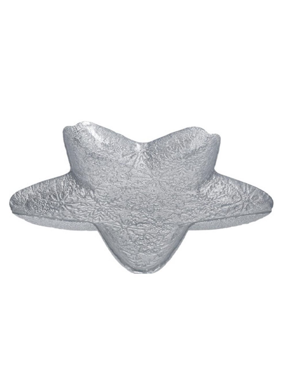 Η γυάλινη πιατέλα σε σχήμα αστεριού, με διάμετρο ∅30xΥ4εκ., προσθέτει μια γιορτινή και κομψή πινελιά σε κάθε τραπέζι ή χώρο. Το διάφανο χρώμα της την καθιστά ιδανική επιλογή για εορταστικές περιστάσεις, όπως Χριστούγεννα ή Πρωτοχρονιά. Αυτή η πιατέλα μπορεί να χρησιμοποιηθεί για σερβίρισμα γλυκών, φρούτων ή άλλων εδεσμάτων, ή ακόμα και ως διακοσμητικό στοιχείο από μόνη της. Η γυάλινη κατασκευή της προσφέρει μια αίσθηση πολυτέλειας, ενώ το σχήμα της προσδίδει μια μοναδική και δημιουργική ατμόσφαιρα στο χώρο σας.