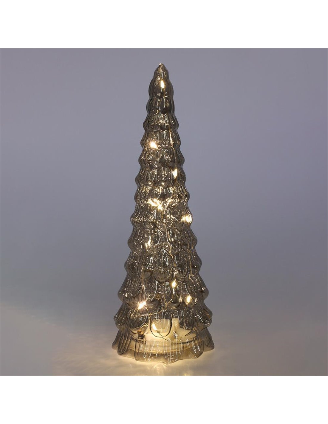 Αυτό το χριστουγεννιάτικο δέντρο από γυαλί σε πράσινο χρώμα προσθέτει μια κομψή και λαμπερή πινελιά στη χριστουγεννιάτικη διακόσμηση σας. Είναι ιδανικό για τοποθέτηση σε τραπέζια, ράφια ή άλλους μικρούς χώρους. Το φωτιζόμενο εφέ του προσφέρει ζεστή και γιορτινή ατμόσφαιρα, καθιστώντας το τέλειο συμπλήρωμα για τις γιορτές. Το καλώδιο με τα LED λειτουργεί με 2 μπαταρίες ΑΑΑ (δε συμπεριλαμβάνονται). Υλικό: γυαλί, Διαστάσεις: Υ24x∅9,5εκ.