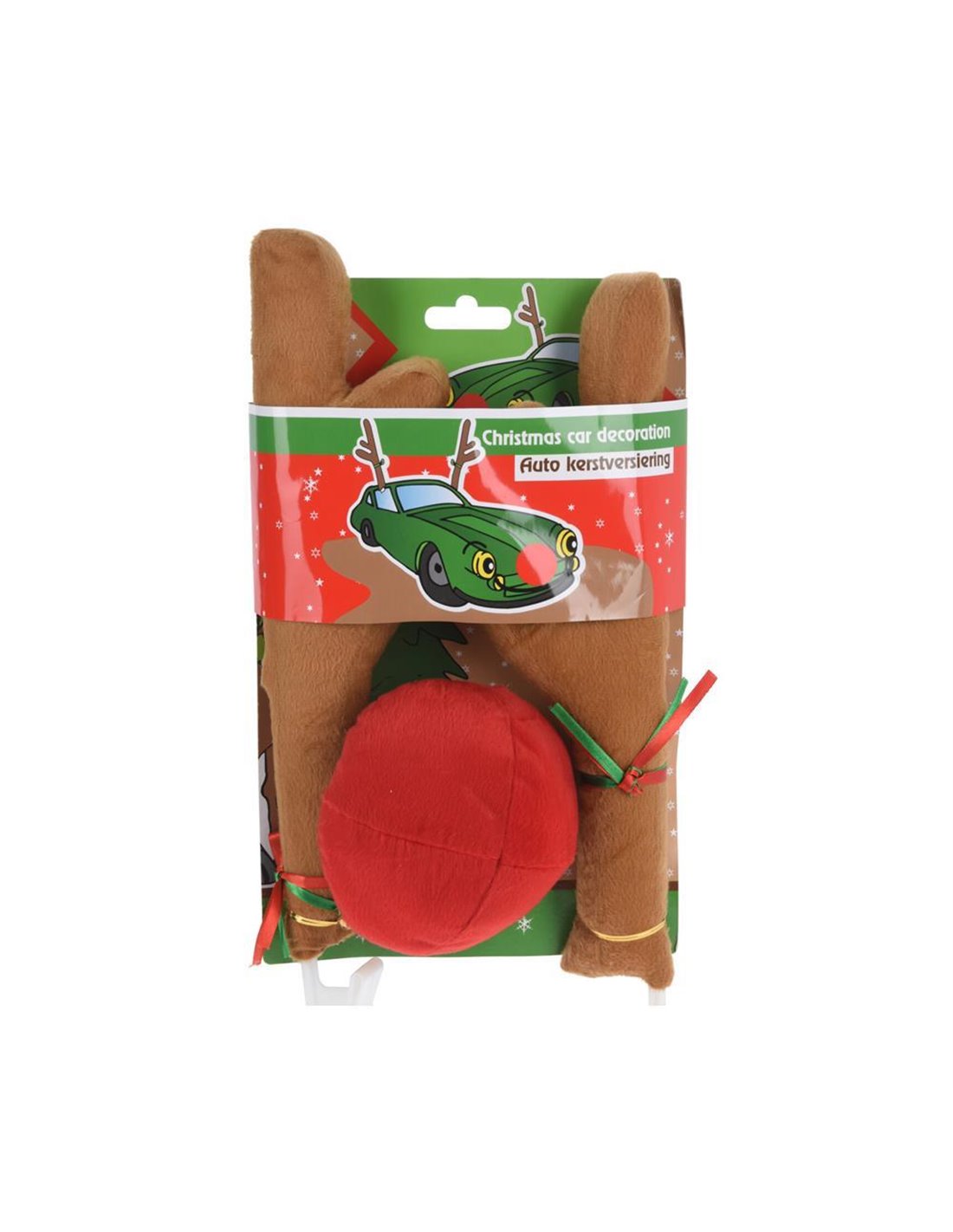 Χριστουγεννιάτικο διακοσμητικό σετ για αυτοκίνητο με κέρατα και μύτη τάρανδου, διαστάσεων 45x23x3 εκ., ιδανικό για να προσθέσετε μια γιορτινή και διασκεδαστική πινελιά στο όχημά σας. Το σετ περιλαμβάνει δύο κέρατα που τοποθετούνται στα παράθυρα και μια κόκκινη μύτη για το μπροστινό μέρος, κάνοντας το αυτοκίνητο να μοιάζει με τον αγαπημένο τάρανδο του Άι Βασίλη!