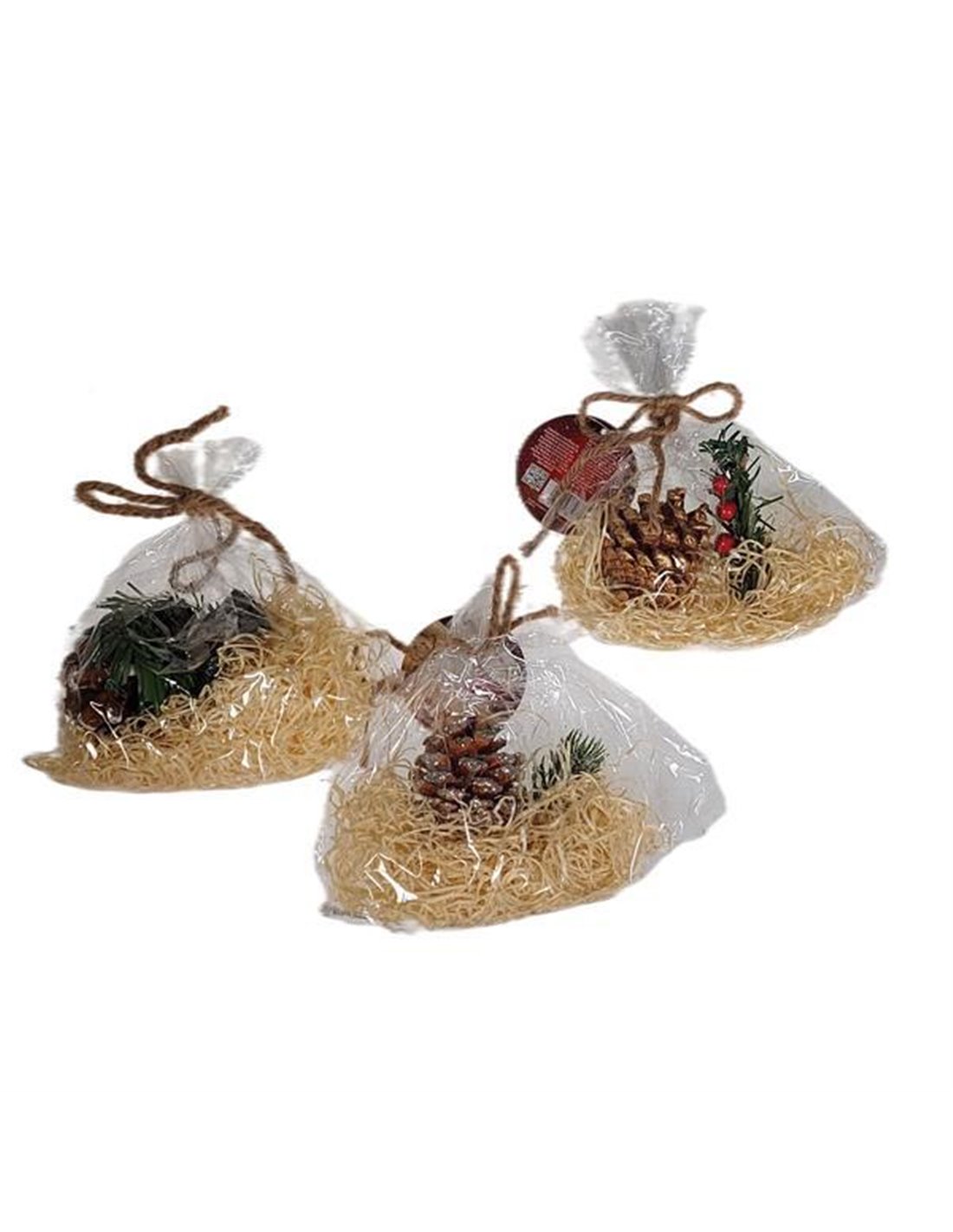 σε διάφανο σακουλάκι με άχυρο και κουκουνάρια.