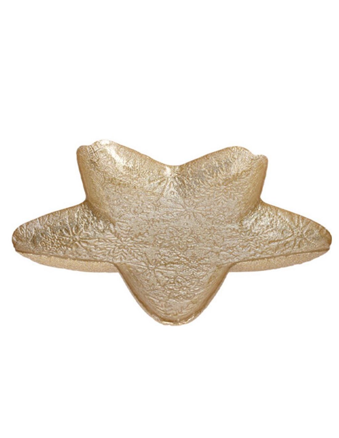 Η γυάλινη πιατέλα σε σχήμα αστεριού, με διάμετρο ∅30xΥ4εκ., προσθέτει μια γιορτινή και κομψή πινελιά σε κάθε τραπέζι ή χώρο. Το έντονο χρυσό χρώμα της την καθιστά ιδανική επιλογή για εορταστικές περιστάσεις, όπως Χριστούγεννα ή Πρωτοχρονιά. Αυτή η πιατέλα μπορεί να χρησιμοποιηθεί για σερβίρισμα γλυκών, φρούτων ή άλλων εδεσμάτων, ή ακόμα και ως διακοσμητικό στοιχείο από μόνη της. Η γυάλινη κατασκευή της προσφέρει μια αίσθηση πολυτέλειας, ενώ το σχήμα της προσδίδει μια μοναδική και δημιουργική ατμόσφαιρα στο χώρο σας.