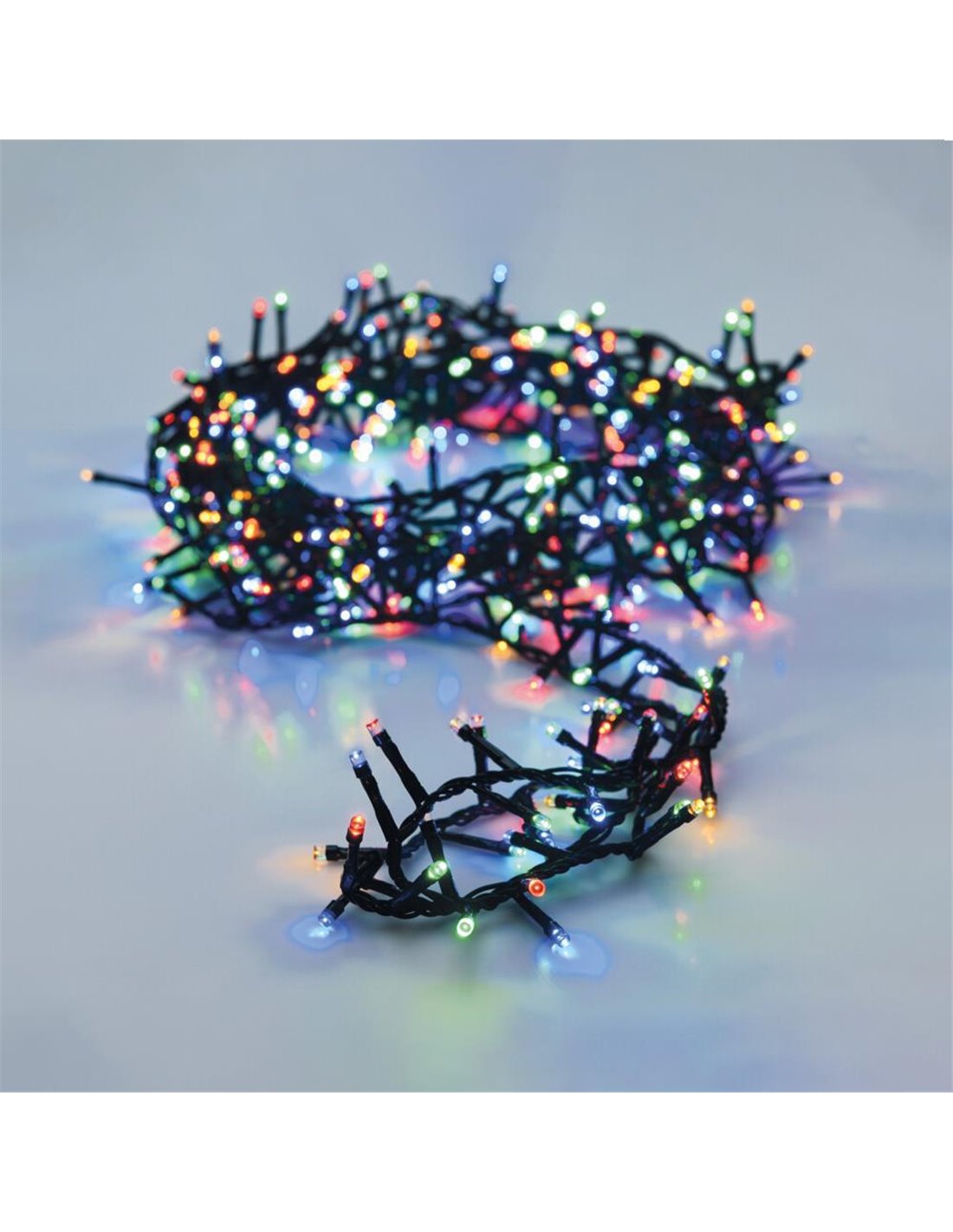 Σετ φωτάκια με 800 πολύχρωμα LED σε πράσινο καλώδιο, συνολικού μήκους 16 μέτρων. Η μικρή απόσταση 2 εκ. ανά λαμπτήρα εξασφαλίζει έντονη και ζωντανή φωταγώγηση που ταιριάζει απόλυτα σε κάθε χριστουγεννιάτικο δέντρο. Διαθέτουν 8 λειτουργίες με μνήμη, χρονοδιακόπτη 8/16 ωρών και καλώδιο τροφοδοσίας 3 μέτρων. Κατάλληλα για χρήση σε εσωτερικούς και εξωτερικούς χώρους (IP44). ✅ LED: 800 πολύχρωμα (5mm) ✅ Συνολικό μήκος: 16 μ. ✅ Απόσταση λαμπτήρων: 2 εκ. ✅ Λειτουργίες: 8 με μνήμη ✅ Χρονοδιακόπτης: 8 ώρες ON / 16 ώρες OFF ✅ Προστασία: IP44 για εξωτερικό χώρο