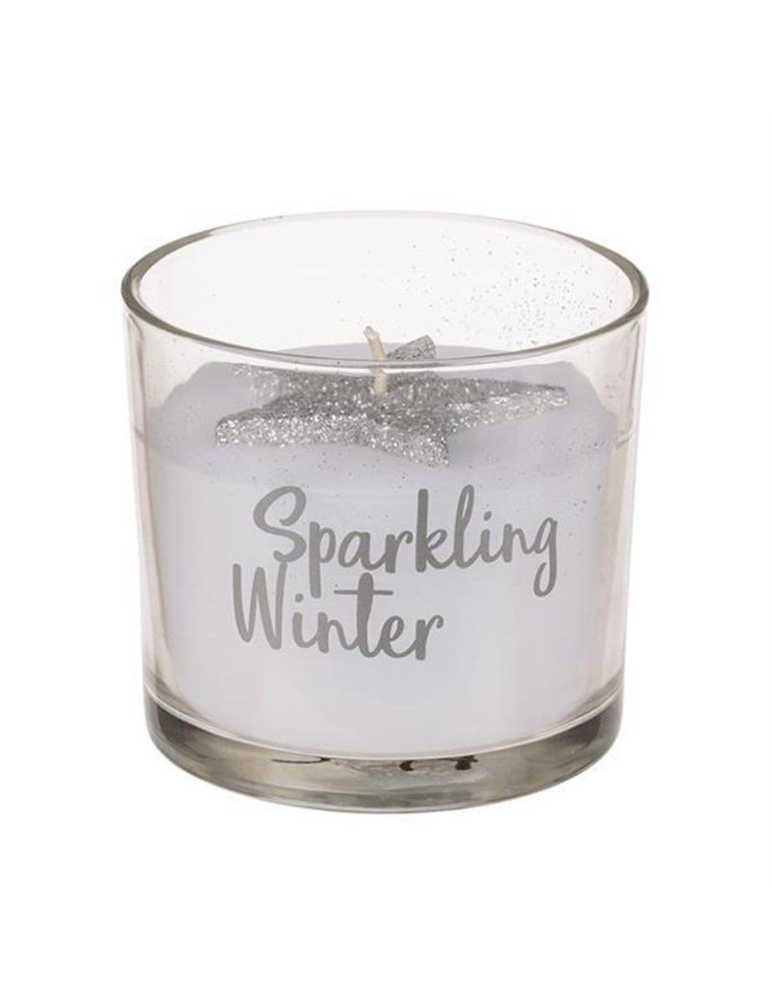 Χριστουγεννιάτικο κερί αρωματικό σε γυάλινο βαζάκι με ασημί αστέρι με glitter στο κέντρο. Τέλεια πρόταση δώρου και διακόσμησης. Διαστάσεις: Ø8x7,5εκ.