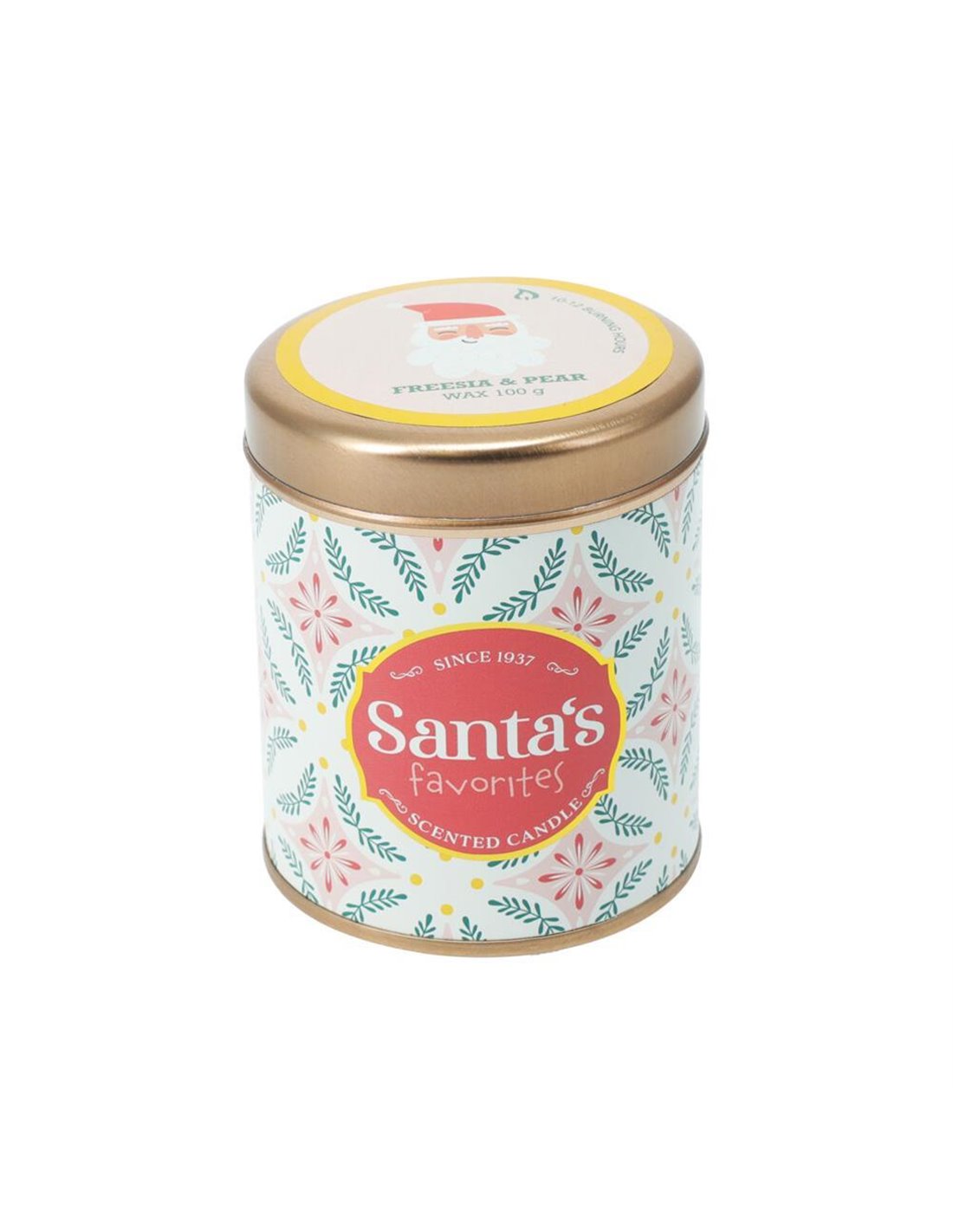 Αρωματικό κερί σε χρυσό μεταλλικό κουτί με θέμα "Santa’s Favorites", που γεμίζει τον χώρο με γιορτινή ατμόσφαιρα και ζεστή μυρωδιά. Κατασκευασμένο από παραφίνη, σε πρακτικό κουτί που διατηρεί το άρωμα αναλλοίωτο και μπορεί να επαναχρησιμοποιηθεί ως διακοσμητικό. Ιδανικό για τη χριστουγεννιάτικη διακόσμηση, αλλά και ως μικρό δώρο για τις γιορτές.