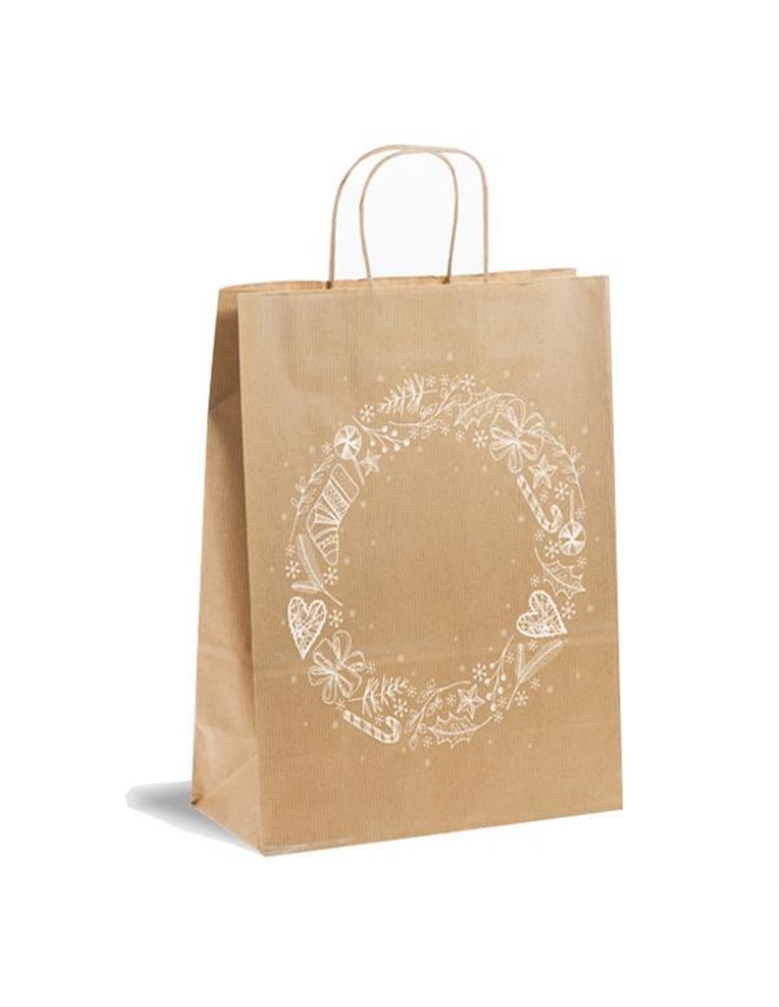 Χάρτινη τσάντα craft με χριστουγενιάτικο μοτίβο και στριφτό χερούλι. Διαστάσεις: Υ41x32x12εκ. Δυνατότητα εκτύπωσης του δικού σας λογότυπου.